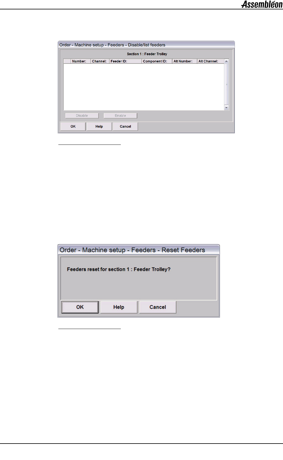 禁用 / 列出供料器 切换到一个对话框,用户可以在此检查供料器设置以及
