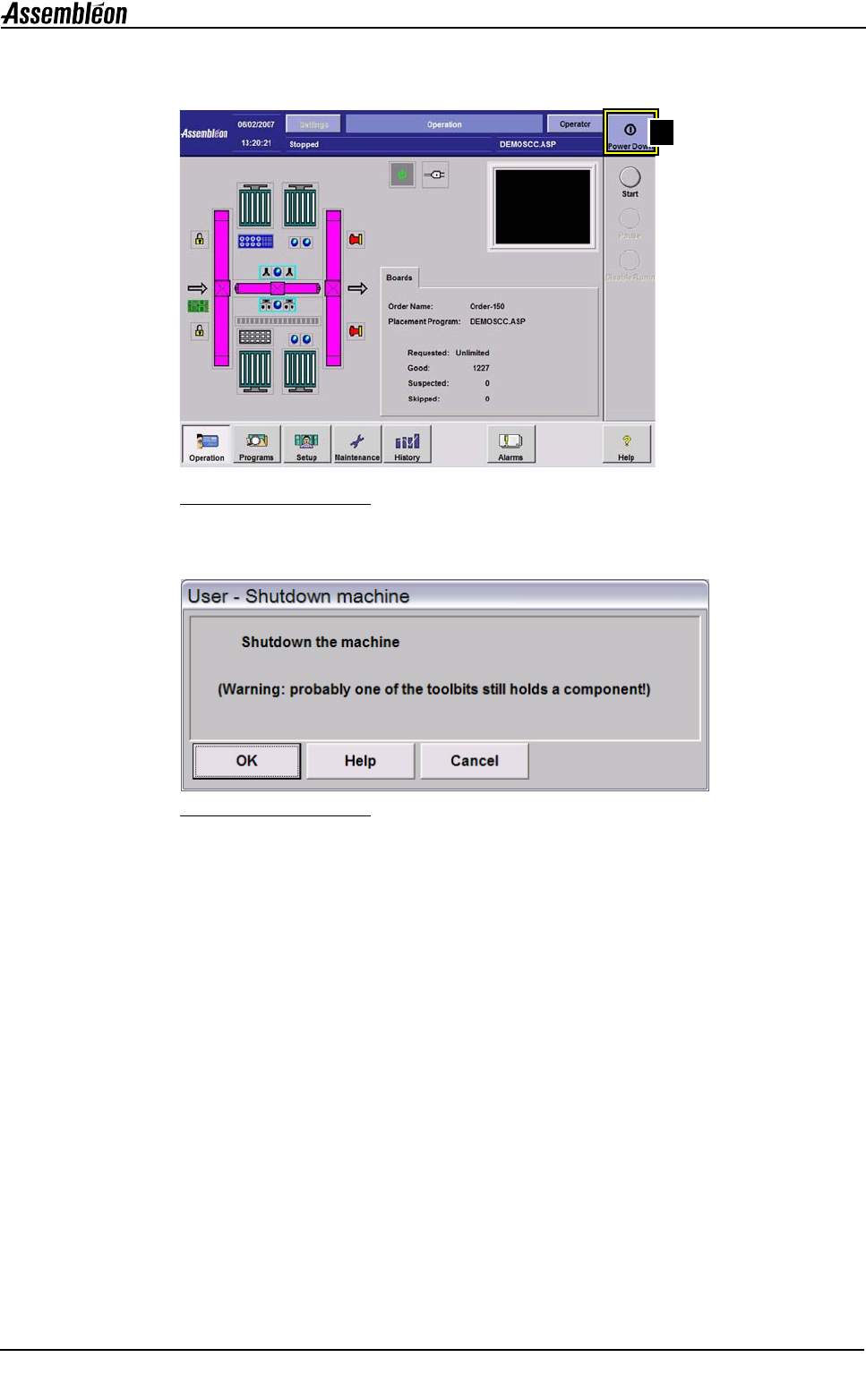 第 4 章 操作手册 4022 593 51292 40 AX-201 07.02 UM-00029.fm 4.4 暂停生产 可以随时暂停生产。 图 44 • 选择 “暂停” (1) 。 当前命令保持活动状态。命令 可以从暂停的状态: • 中止,请参阅 4.3. 停止生产 • 按“ 开 始 ” (2) 继续。 1 2