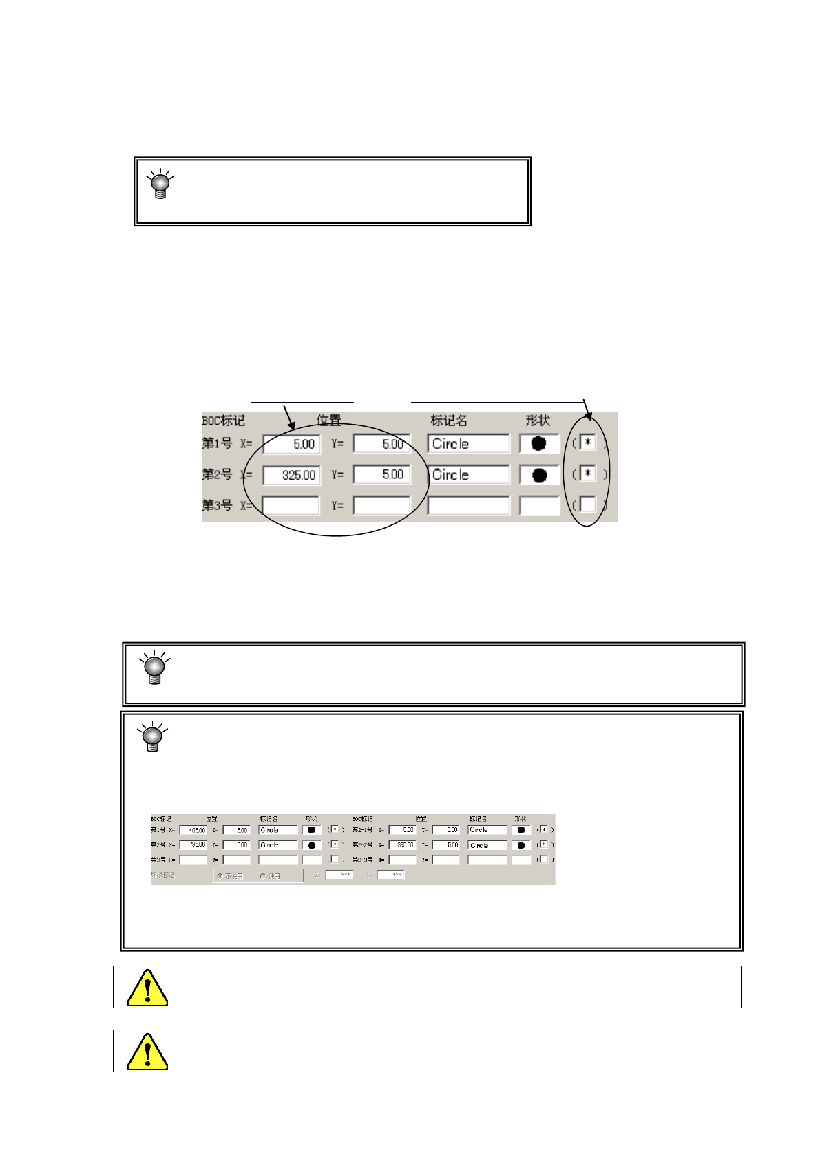 输入从基板位置基准或电路原点到各BOC标记的中心位置的尺寸。