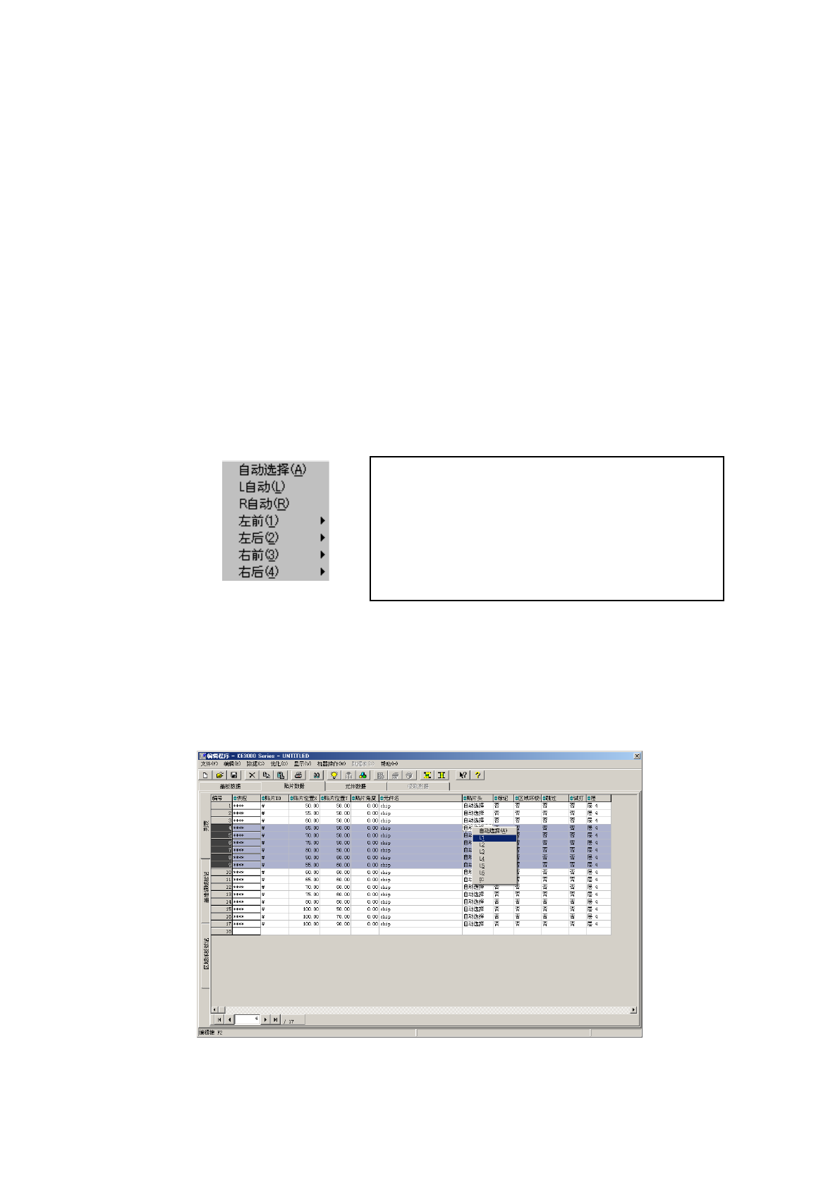 但若在贴片数据中选择多行后显示上述菜单时,不显示“编辑”。