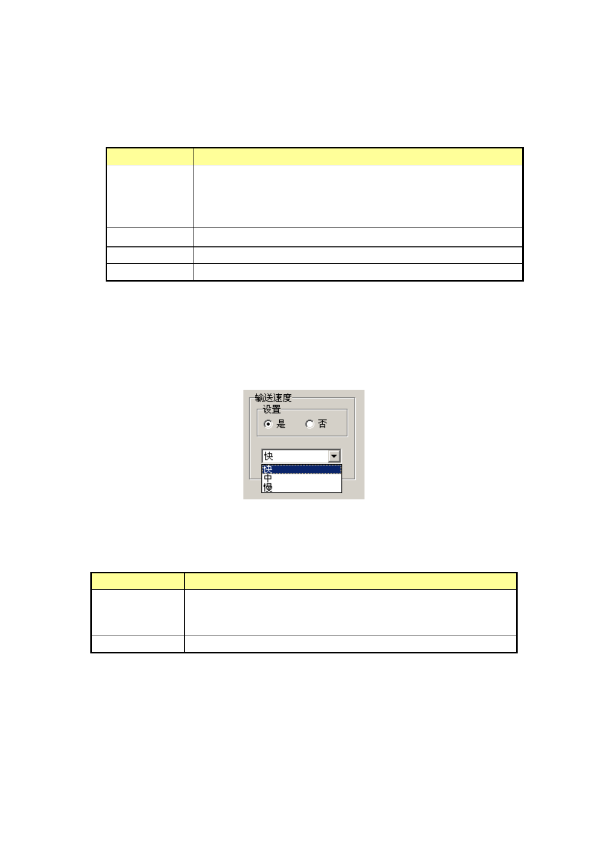设置电动式供料器的间距输送速度。要变更输送速度时,设置选择“是”,从下拉列表中选择“高速”、