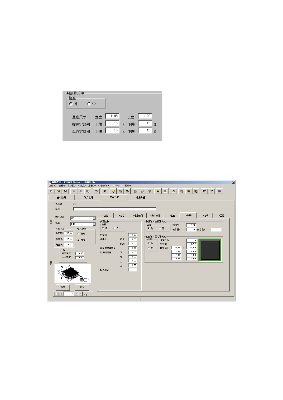 设置是否进行异类元件判断、实施时的基准尺寸、判断级别。