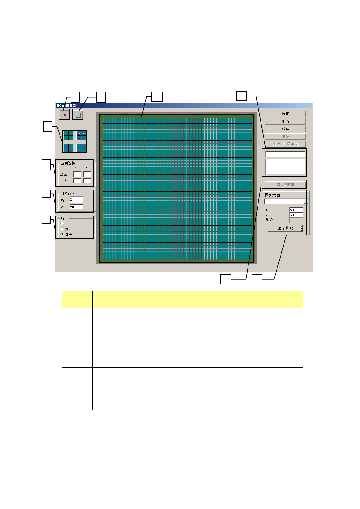 操作手册Ⅱ 3- 103 b ) 编辑 球面图案 进行球面图案的 新建、编辑。 可从 “ 浏览 ” 的 “ 球面图案列表 ” 中选择已制作的球 面图案。 最多可注册 16 个图案。 图标 / 按钮 说明 ① 对球逐个进行编 辑。 左击为制作球面 ,右击为制作索 引标记( ※ 1 )。 ② 用鼠标指定范围 , 一次性制作。 ➂ 可以选择在指定 范围制作时 , 制作的图案。 ④ 显示在球面图案 制作范围内选择 的区域。 ⑤ 显示在球面图案 …