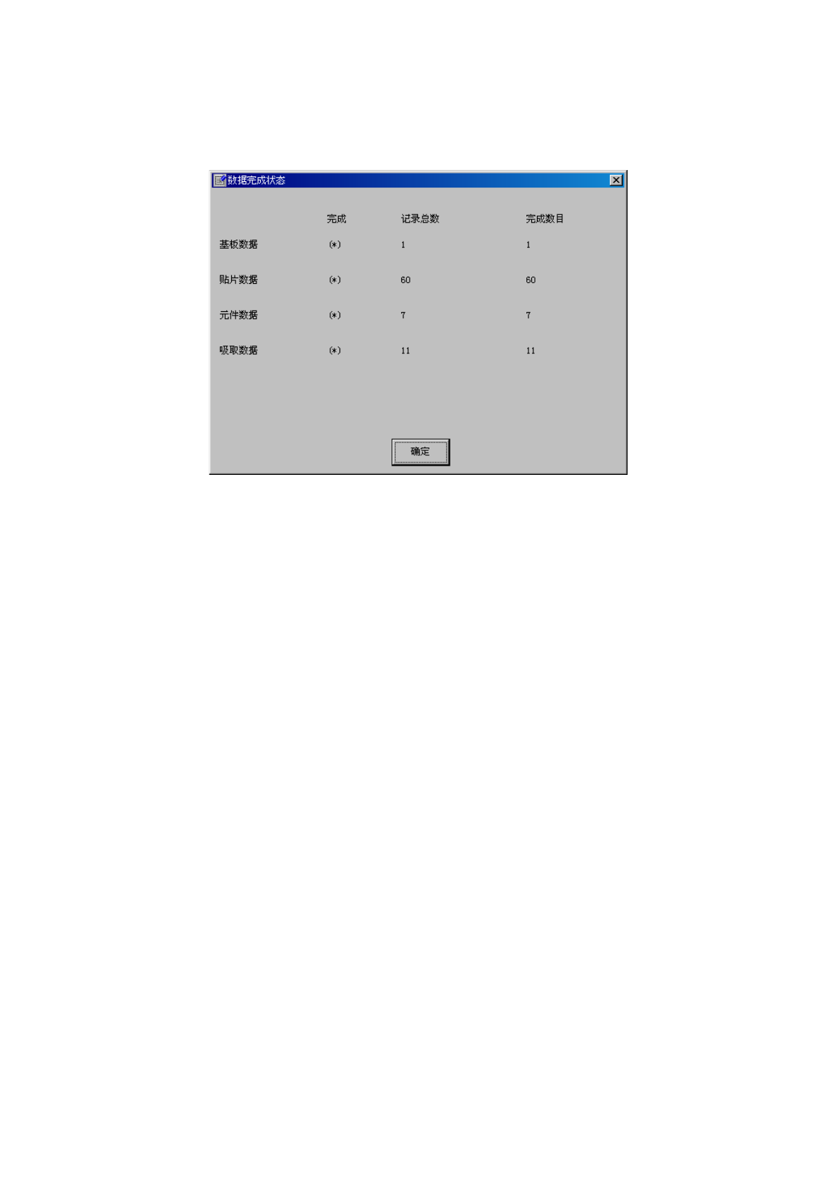 从菜单栏中单击“数据”/“数据完成状态”后,会显示如下画面。