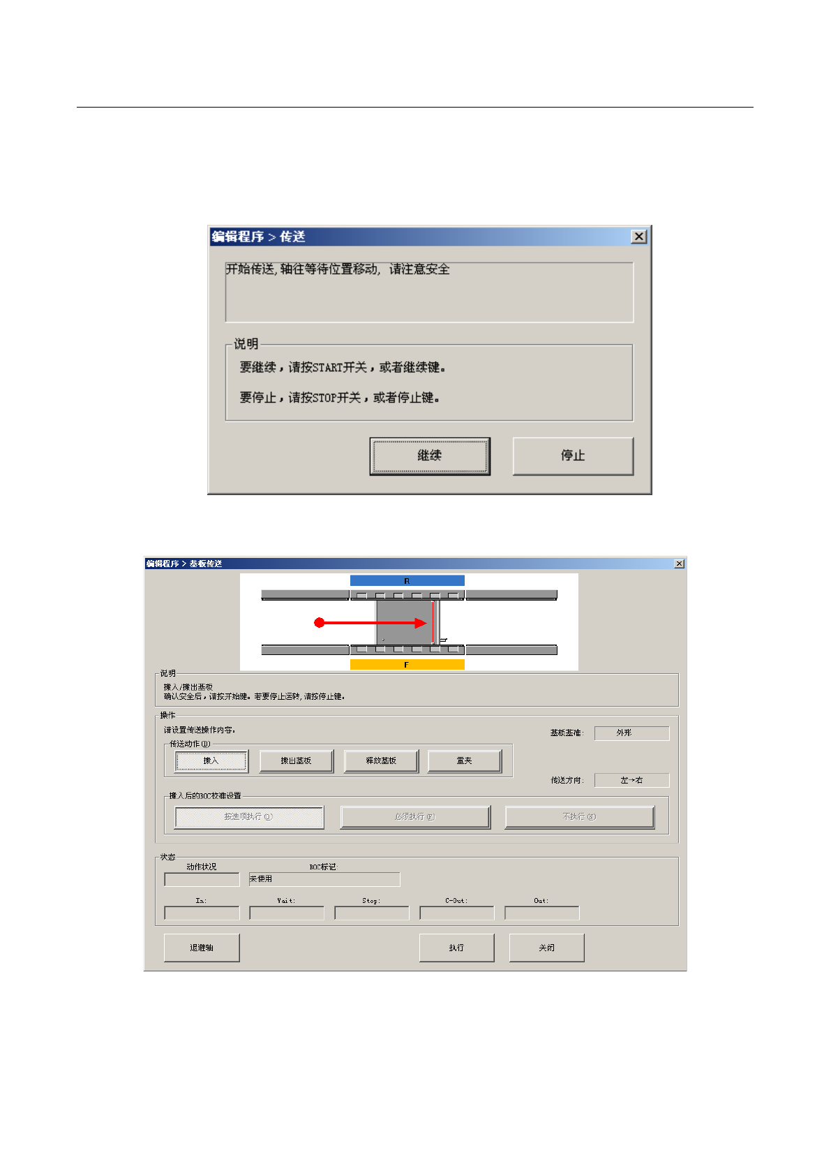 将轴移动到安全位置等待后,会显示下列基板传送画面。