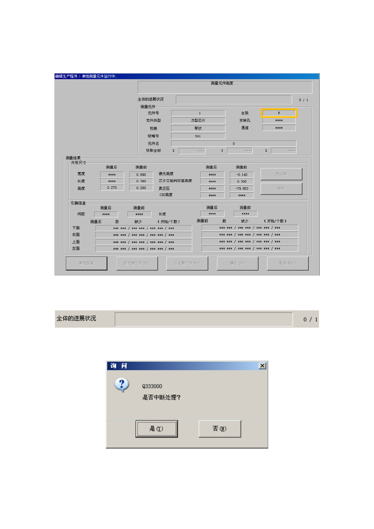 根据尺寸计算出的激光高度或芯片站立判定高度与原来的值不同时,显示如下询问。