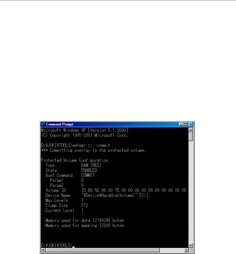 (2)在控制台窗口(console window)( DOS 画面)上,输入“ewfmgr C: -commit”。