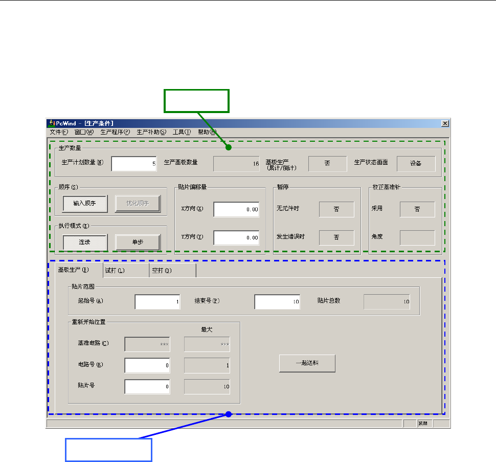 在“基板生产”、“试打”、“空打”各种生产模式上,分别设定各自的生产条件。