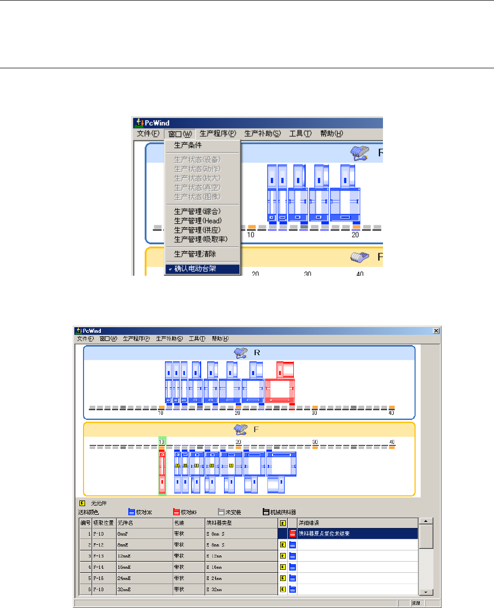 另外,台架与生产程序、设置、实际附带的台架不同时也以红色显示。