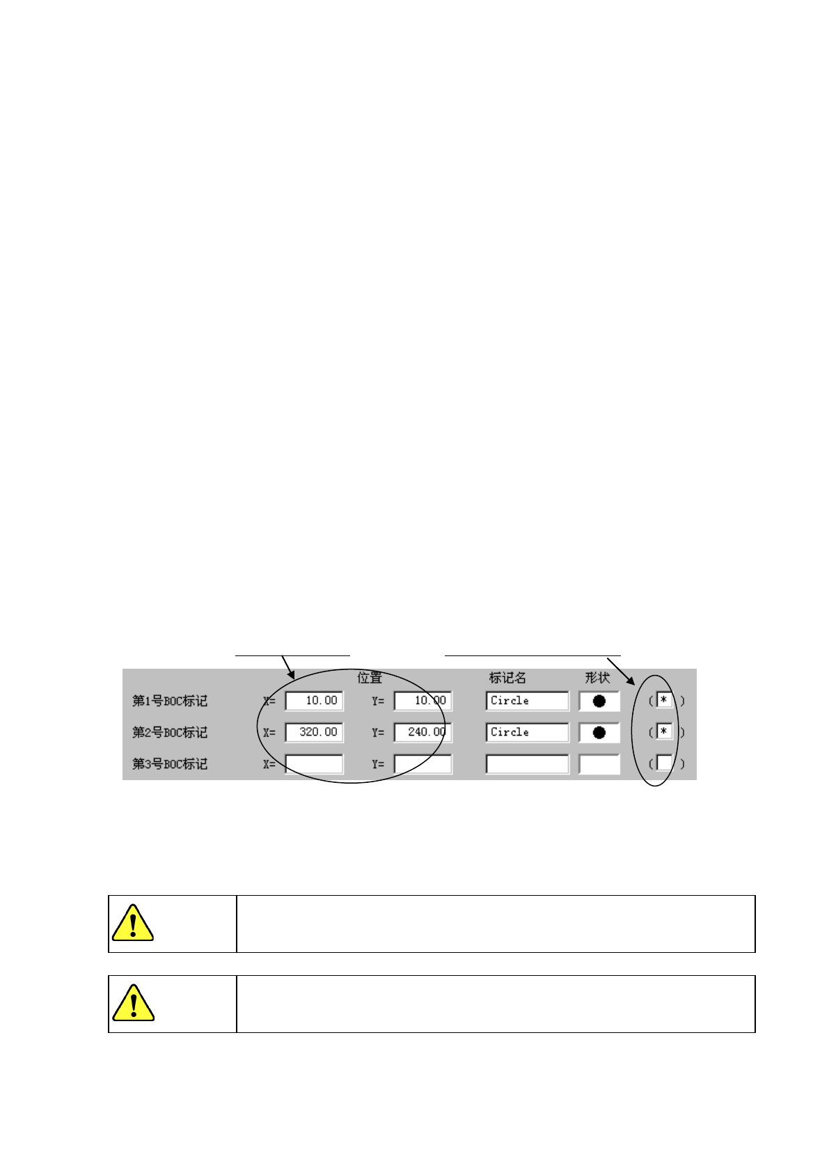 输入由基板位置基准(原点)到各BOC标记的中心位置的尺寸,设置标记名并进行标记形状的示