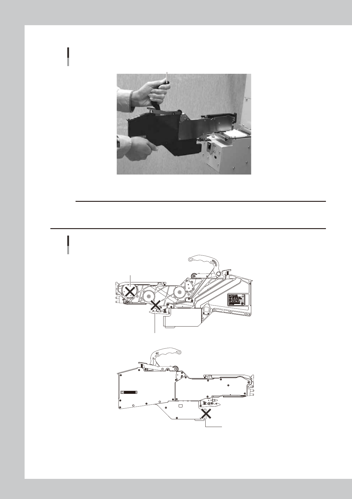 · Use a dustpan or the like when cleaning the upper feeder plate so that wiped foreign matter would not fall on the