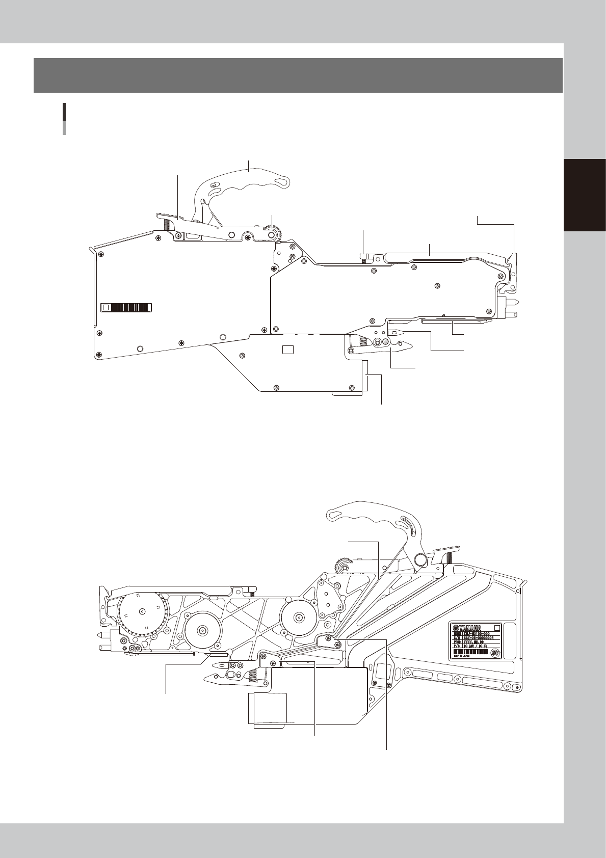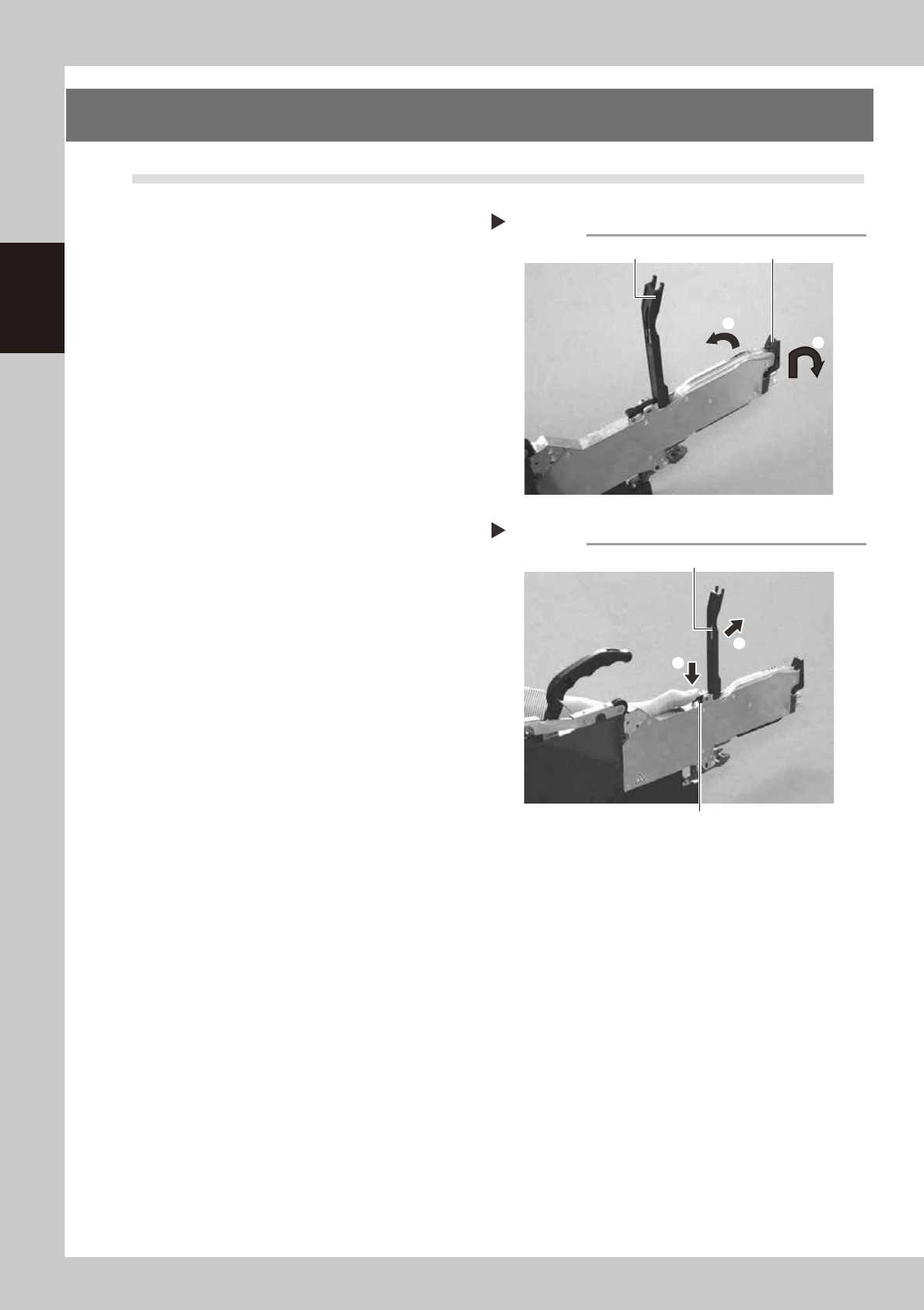 2-2 2 Replacing parts 2. T ape Guide Assembly 2.1 Removal 1 Lift the tape guide assembly . Open the tape guide front lever and lift the tape guide assembly. 63202-9L-10 2 Remo ve the tape guide assembly . Push down the t…