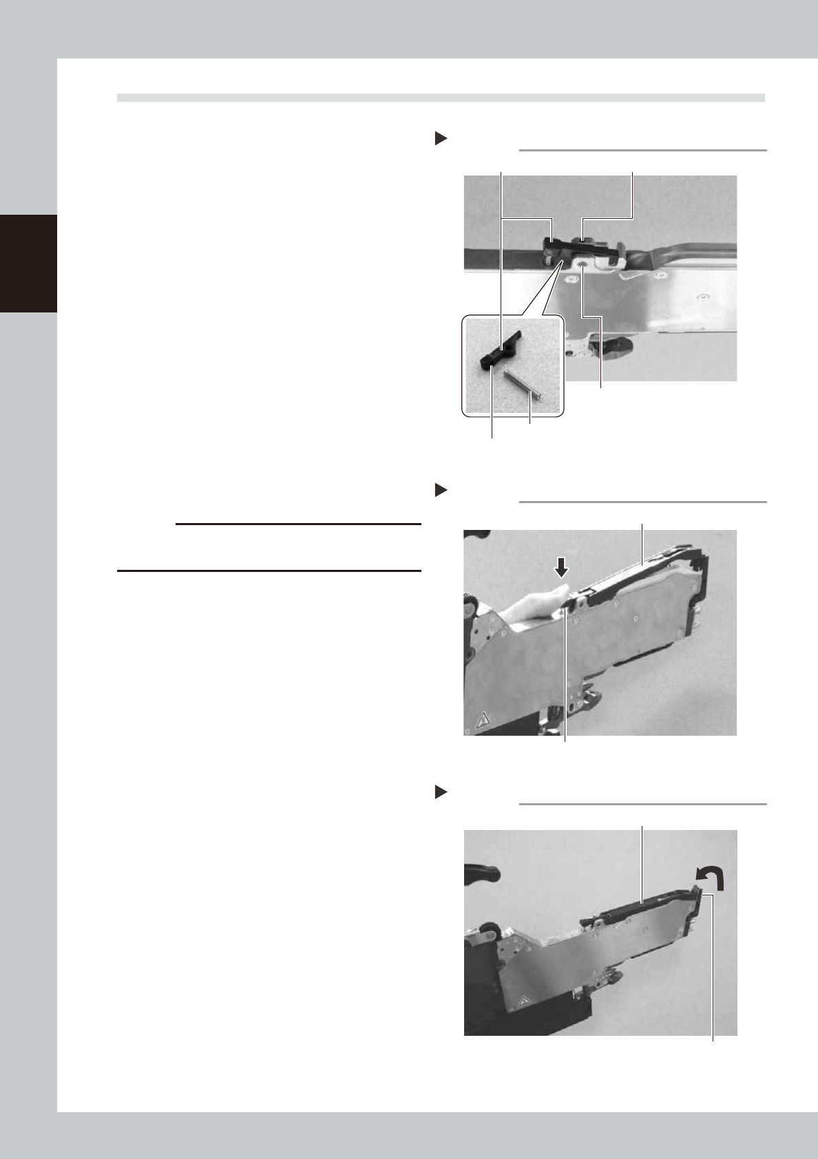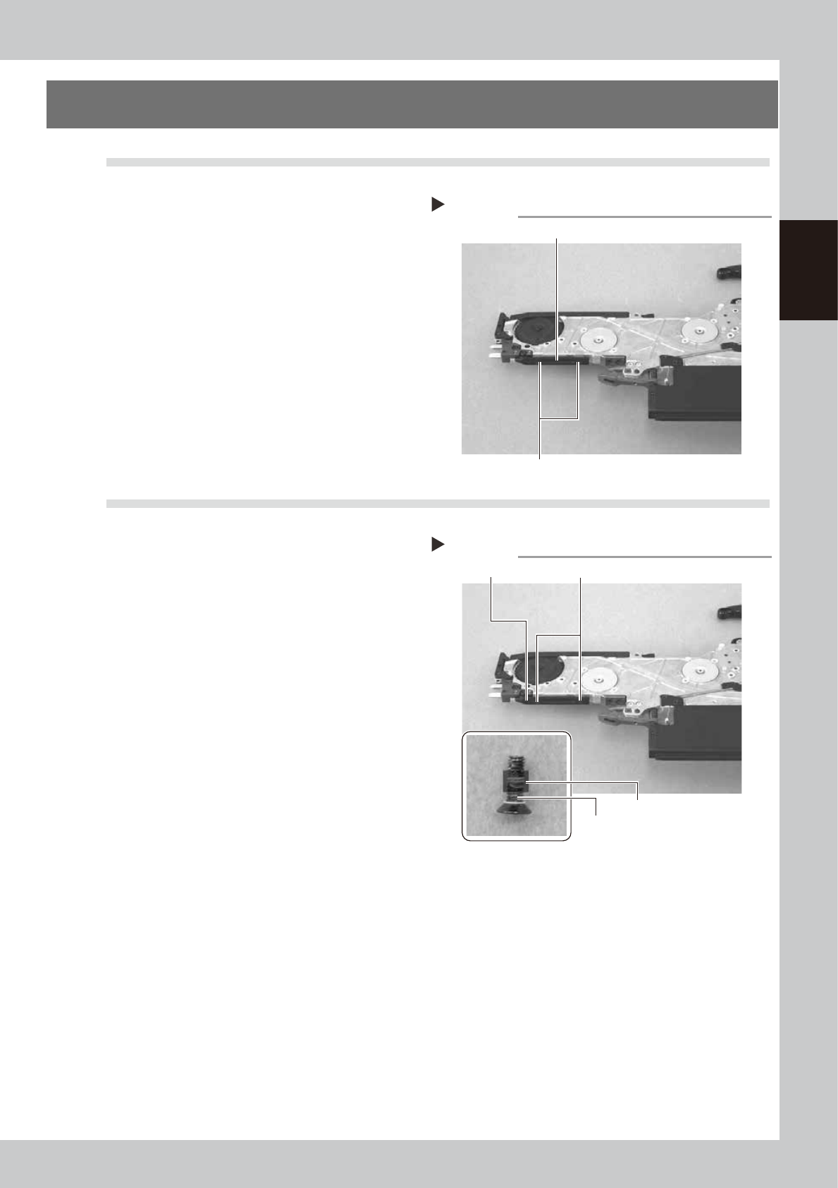 2-8 2 Replacing parts 4.2 Installation 1 Install the tape guide rear le ver . Insert the spring on the depressed portion of the new tape guide rear lever and the depressed portion of the body, align the position of the p…