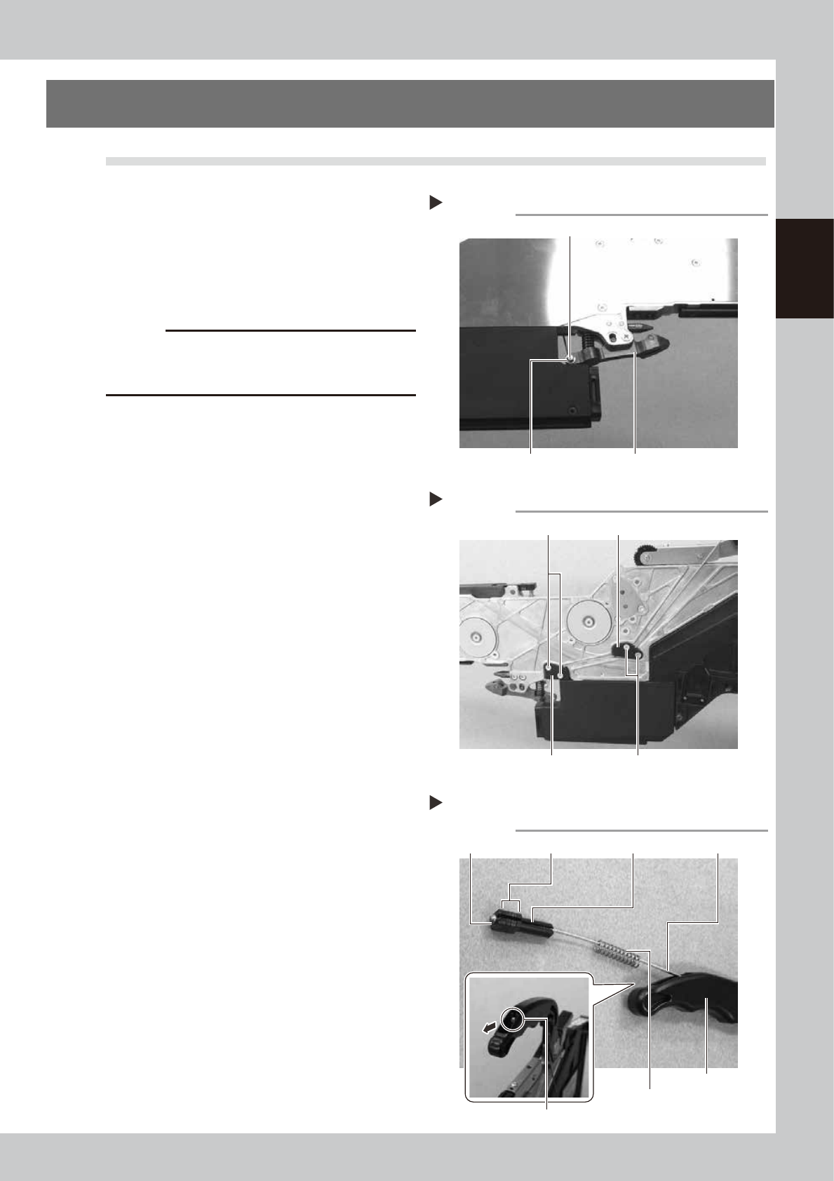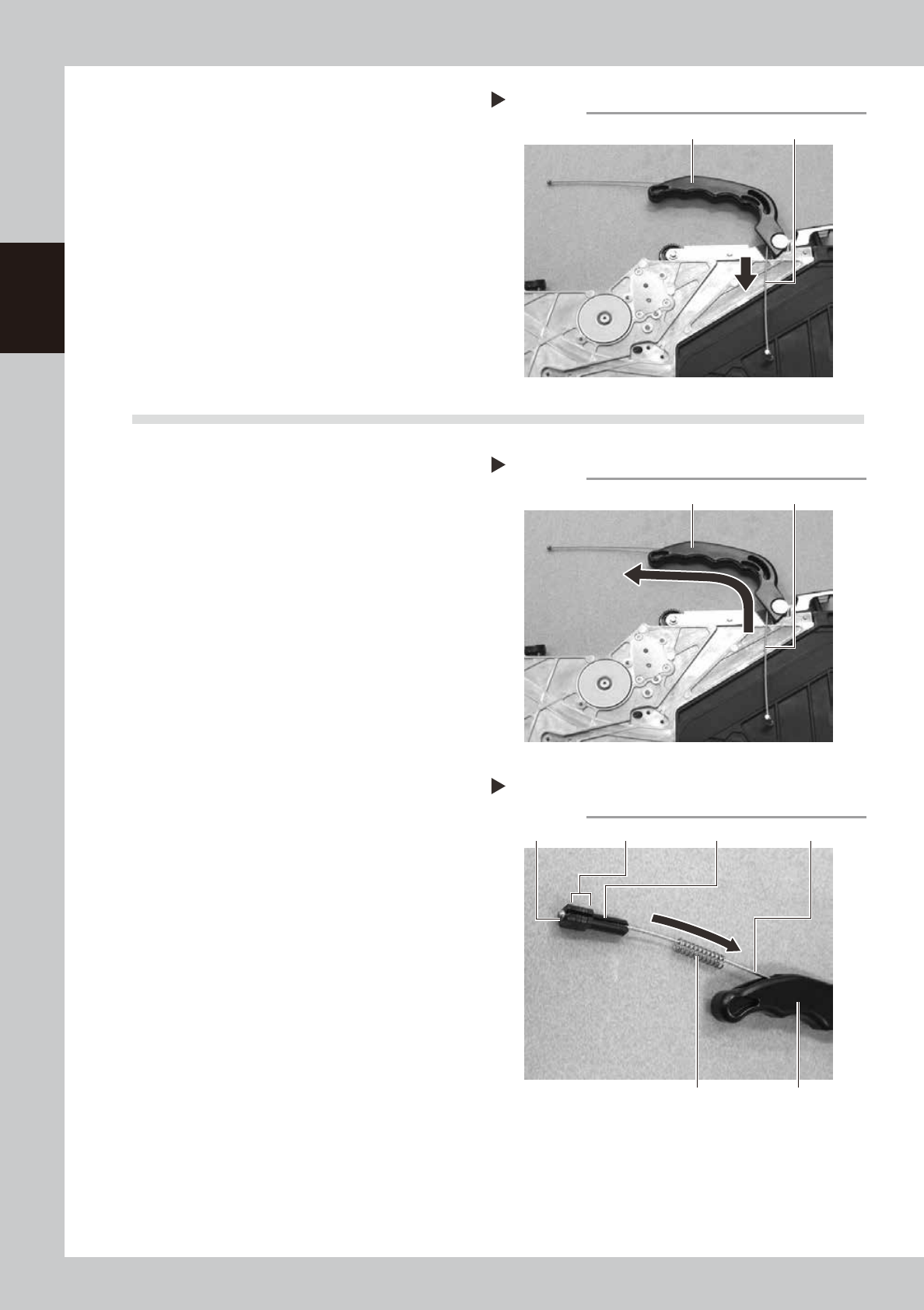 2-18 2 Replacing parts 4 Remo ve the unclamping wire. Pull out the unclamping wire from the handle mounting portion side. 63234-9L-00 9.2 Installation 1 Install the unclamping wire. Insert the new unclamping wire from th…