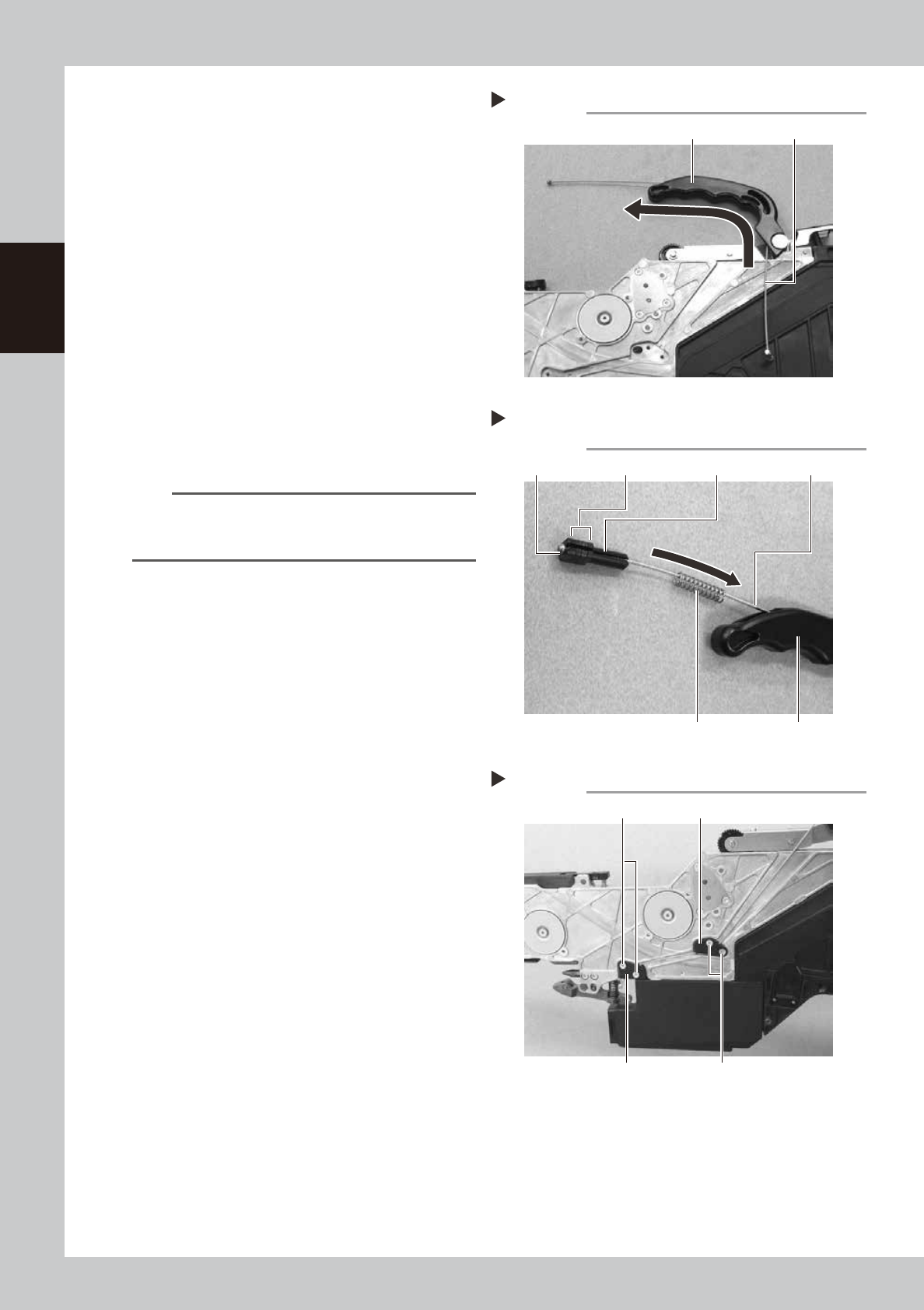 2-24 2 Replacing parts 2 Install the unclamping wire. Insert the unclamping wire from the handle mounting portion side. 63246-9L-00 3 Install the tension spacer 1, tension spacer 2, wire tension 1 and tension spring. Ins…