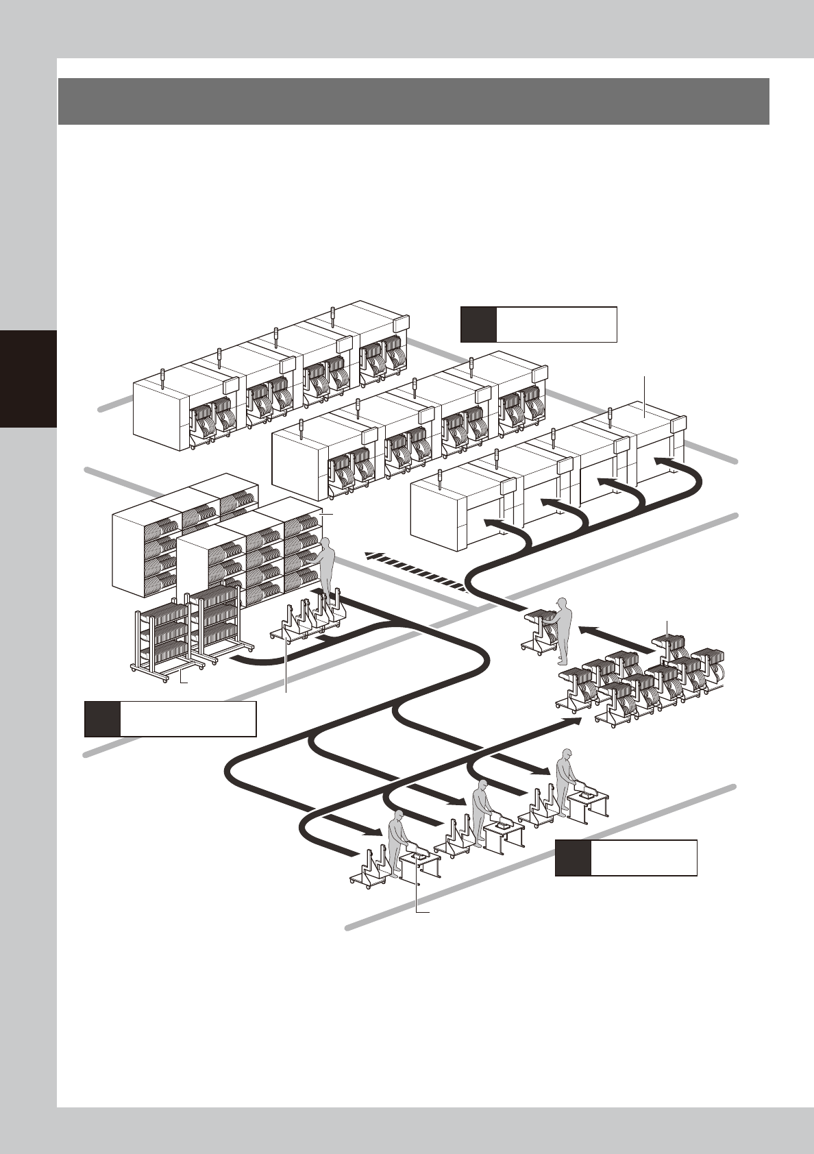 3-3 3 Application examples Component storage 1 2 3 Setup space Production line Prepare blank changeable feeder bank. Set tapes to feeders according to setup instructions. Set-up station on machine Out of components Setup…