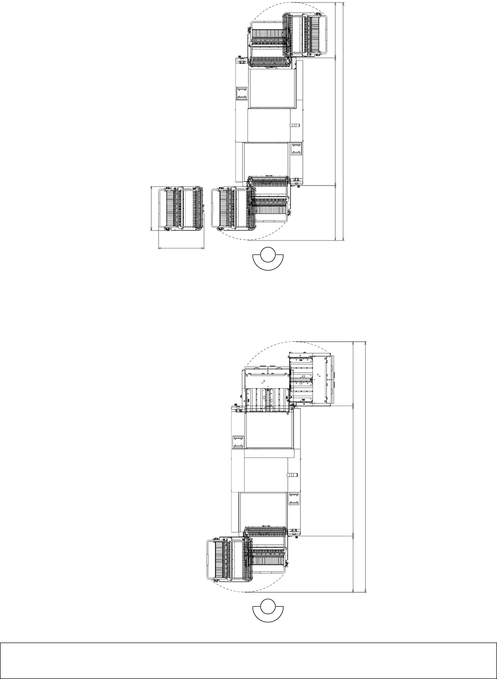 在维护作业时有时会卸下托盘供料器,所以设置机器时请必须确保以下的空间。
