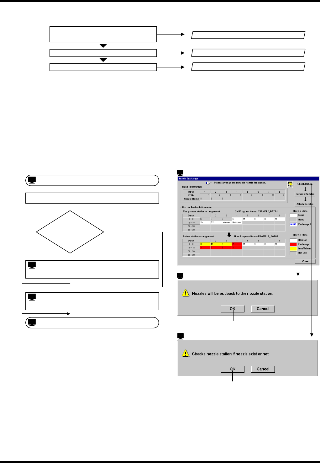 按 <Cancel> (取消) 时,不进行动作就返回 ‘Nozzle Exchange’ (吸嘴交换) 画面,但是不进入下一工序。