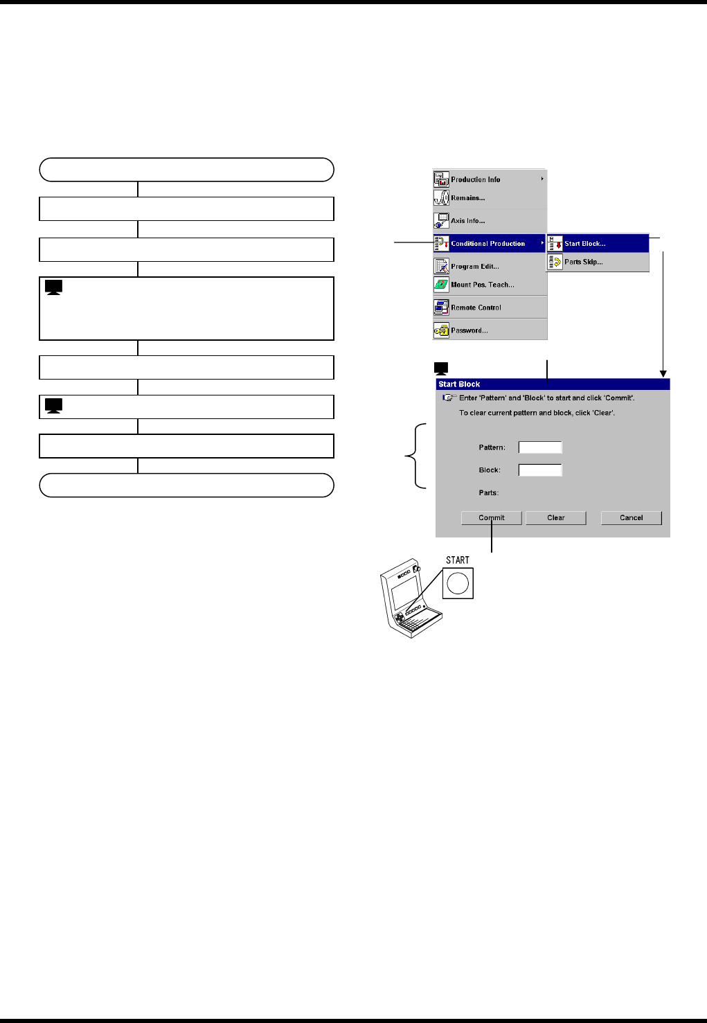 BM231 操作手册 7.3 执行 开始程序块 E35OCC-22- 032-A0 7.3-1 4. 1. 2. 3. 7.3. 执行开始程序块 E35OCC-22-032-A 0 在本节中对从品种程序 的中途开始实装的功 能进行了说明。 7.3.1 功能 功能 执行开始程序块,可以 从指定的程序块开始 进行实装。 如果生产中停电,发生 程序修改等,使设备 在中途停止时,从品 种程序的中途再开 始运转时使用。 运转条件 可以在下…