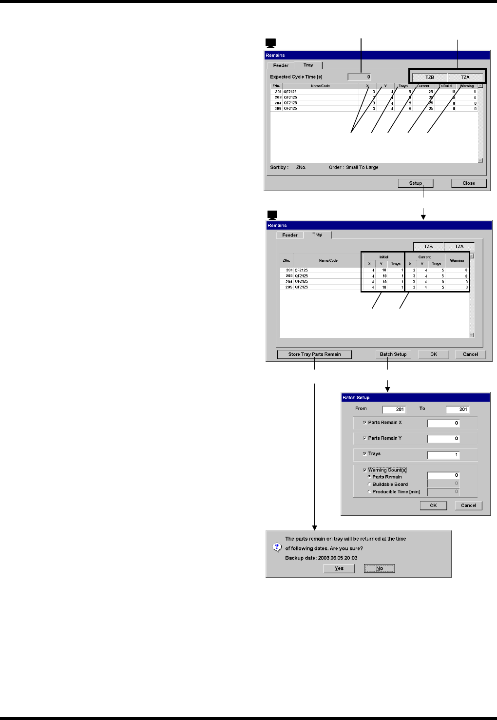 可用下述的 < Store Tray Parts Remain >(余数读取) 进行更新,必要时在此直接输入,也可指定吸着开