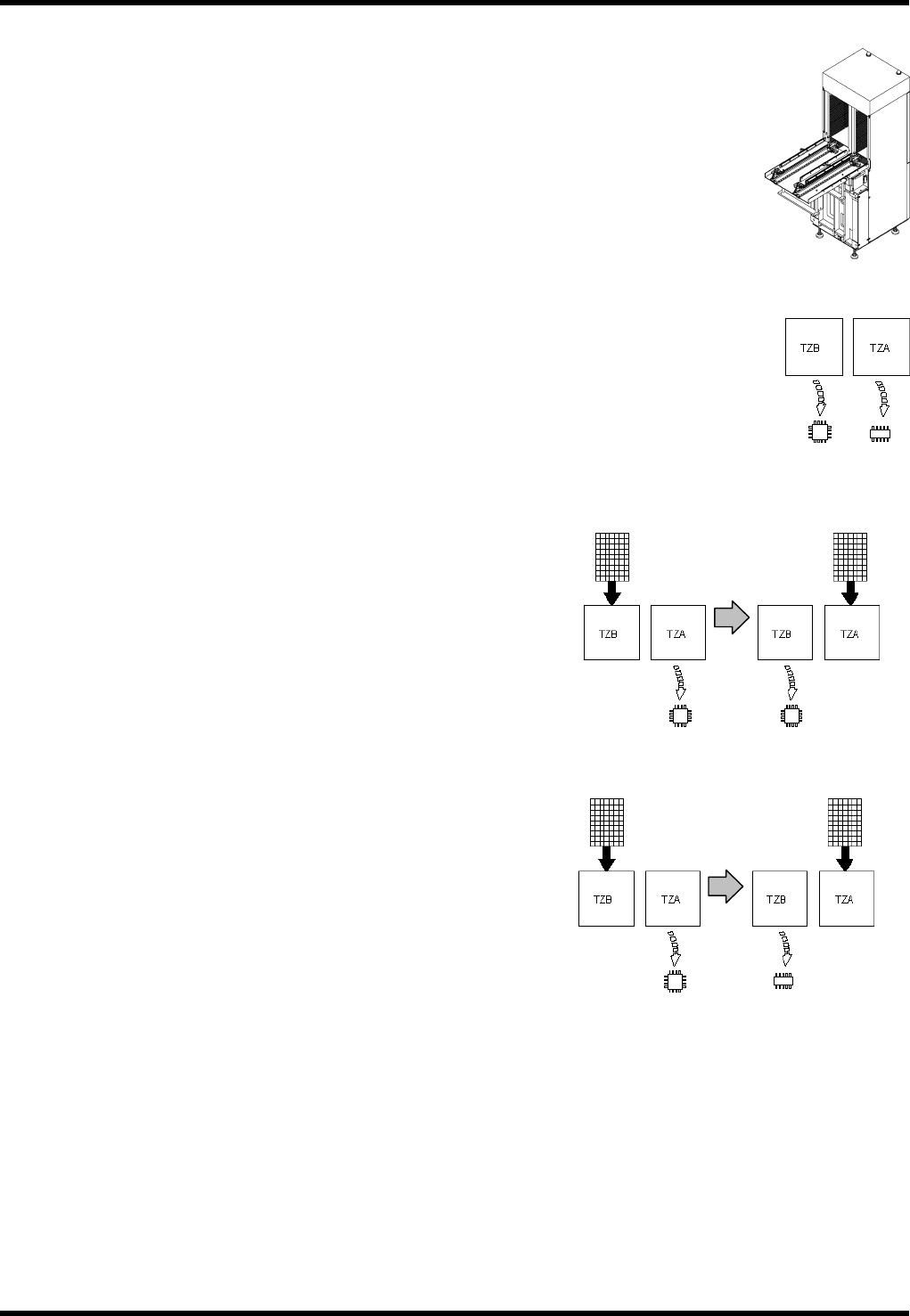 BM231 操作手册 3.1 装置全体 E35OCC-13- 012-A0 3.1-5 托盘供给部 在左右各 40 层升降机上共可设置 80 种托盘。 左右升降机各自独立动 作。 动作有以下 3 种模式,适 用于从少品种大量 生产到多品种少量生 产的多种生产形态 。 连接模式 (Connection Mode) 该模式最适合元件种类 较多的生产。 使用 TZA 、 TZ B 两个升降机,最多可贴装 80 种元件。 交换模式 …
