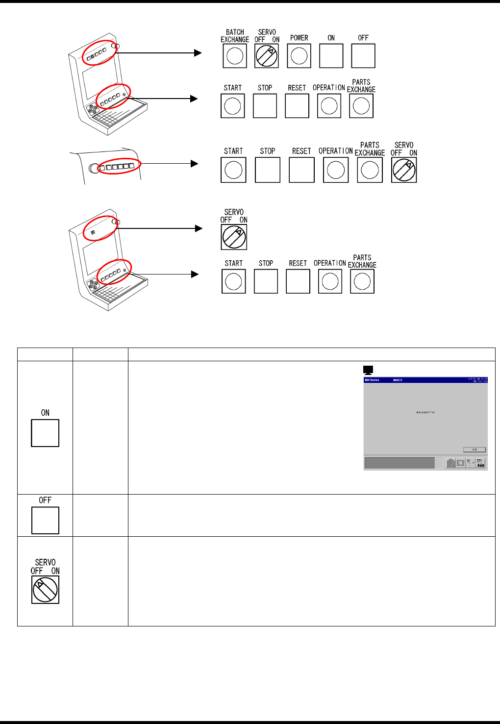 BM231 操作手册 3.2 托盘升降部的开关 ( 选项 ) E35OCC-13- 132-A0 3.2-4 = 提示 = 1 字符输入全部都用大写 字符输入。 大写字符、小写字符不 能转换。 但是对于密码,大写字 符、小写字符均可使 用。 在输入画面的下部,显 示当前的输入状态。 CAPS : 可 以输入大写字符 。 NUM : 是 Num Lock (数字锁定) 的状态。