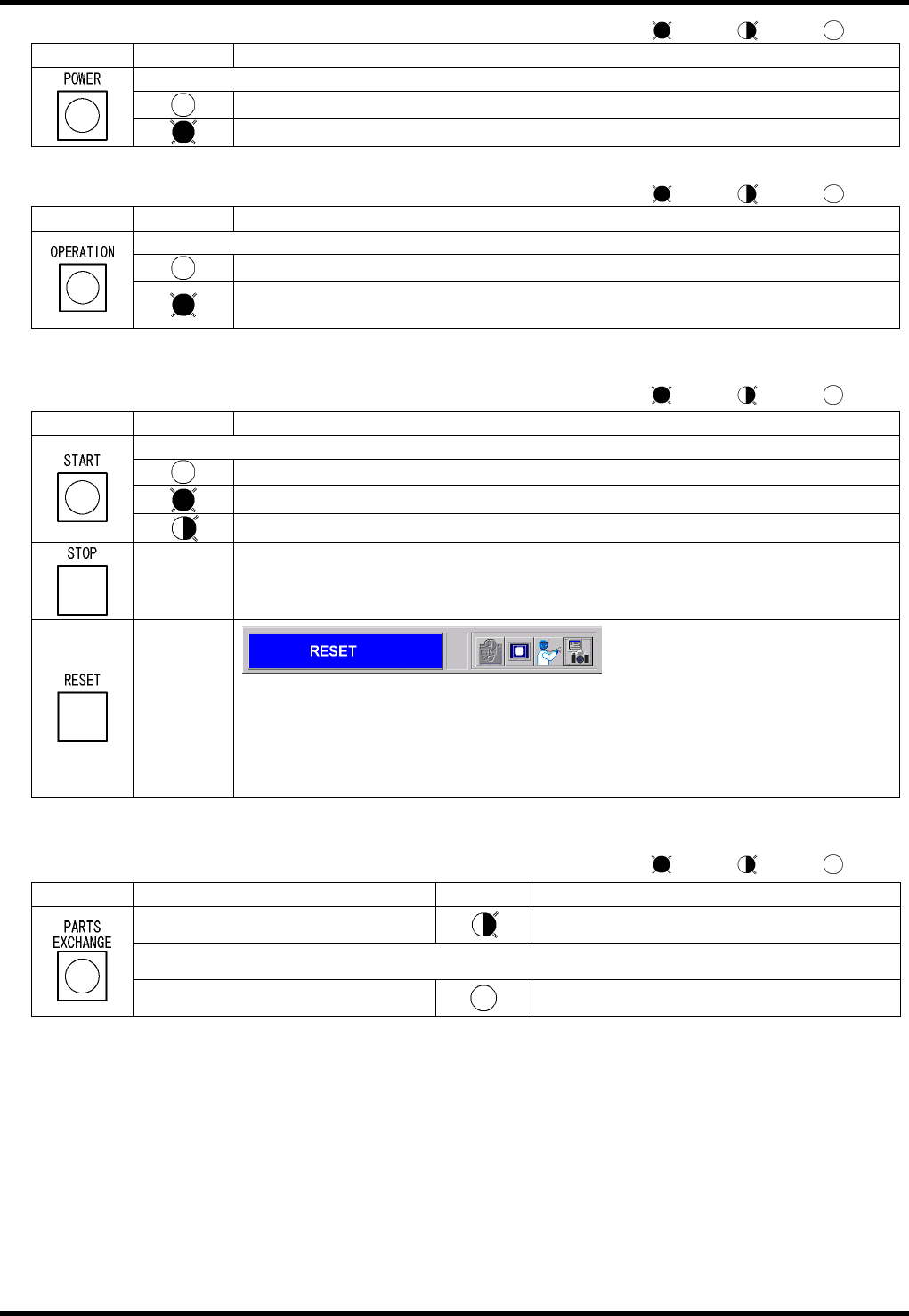 BM231 操作手册 3.2 托盘升降部的开关 ( 选项 ) E35OCC-13- 132-A0 3.2-6 显示灯 显示灯 LED 显示 功能,状态 显示向设备供给电源 ( 主电源开关 ) 的状态。 主电源开关为 OFF 主电源开关为 ON 前后转换开关 开关 LED 显示 功能 ,状态 转换有效的操作盘 ( 前部 / 后部 ) 。 不能进行操作的状态。 能进行操作的状态。 不能进行反方向的操作 。 运转开关 开关 LED…