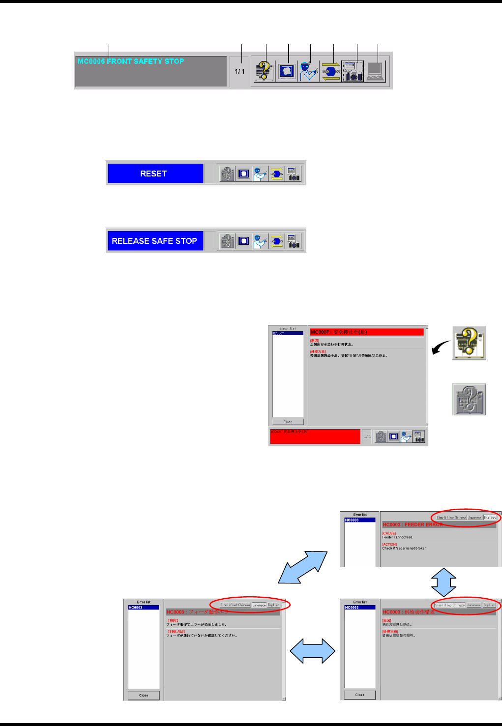 只要错误不解除,即使用<Close>(关闭)按钮关闭,也会通过< hint screen displayed >(提示画面显示)按