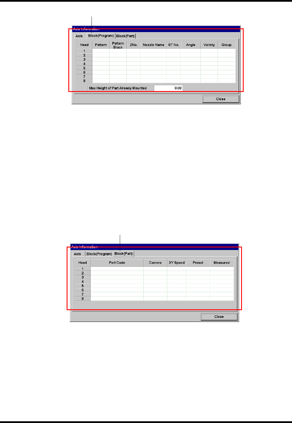 显示在当前执行的程序中的使用各吸头的状况(元件程序库相关信息)。