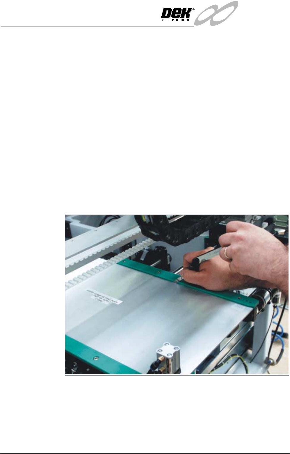INFINITY EX HIGH THROUG HPUT CONVE YOR MODULE ADJUS TMENT S AND SET TINGS Chapter Issu e 1 Aug 02 Technical Reference Manual 16.39 8. Loosen the four green wear insert securing bolts. 9. Adjust the inse rt to allo w free…
