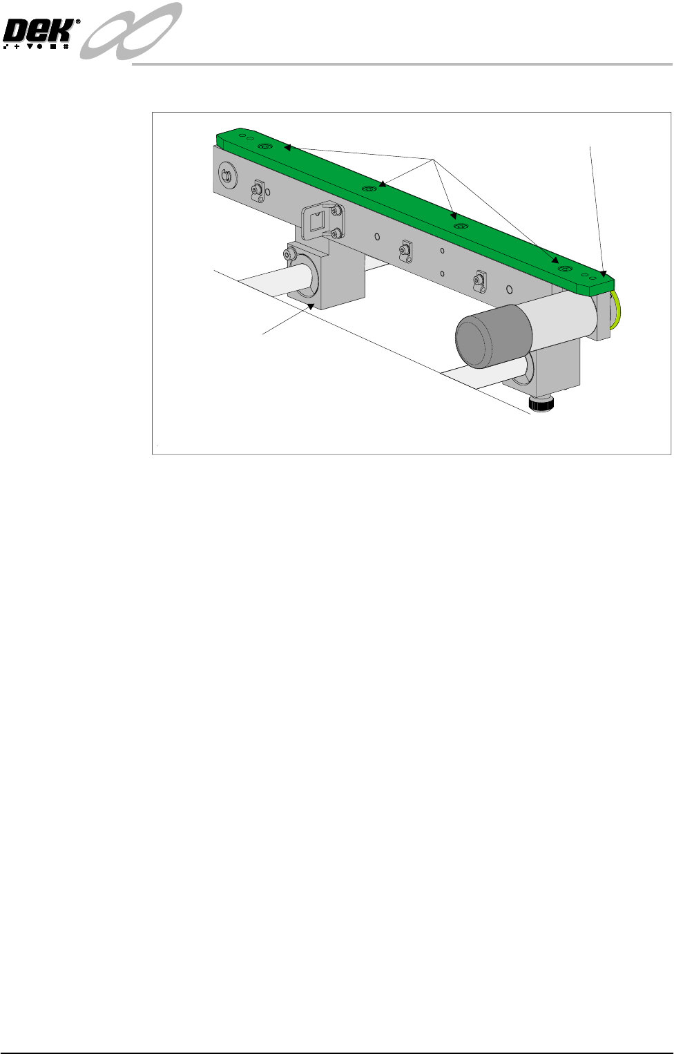 conveyor guide plate to rear rail support and the four bolts that secure the rail