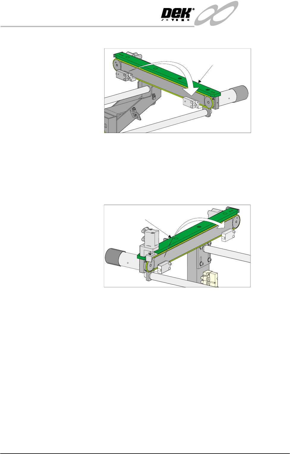 17.Fit the downline board stop to the left hand auxiliary conveyor front rail