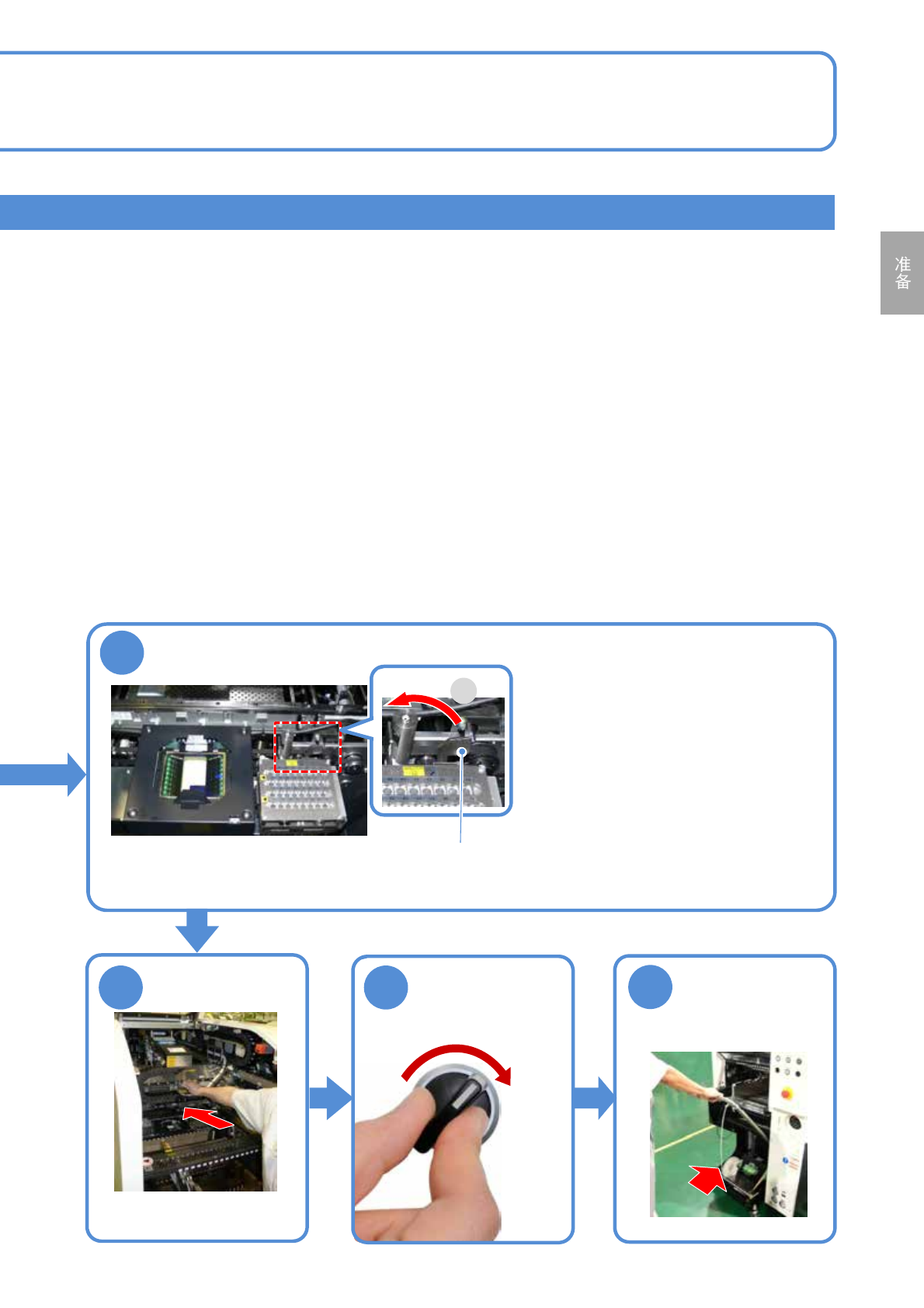 NPM-D3 EJM6DC-MB-02O-09 2-5-1 -3 5 6 操作杆 卸下吸嘴交换器 安装新的吸嘴交换器 ●对准「▲」和「▼」,使其滑动。 个别 准备 操作篇 2-5-1 吸嘴交换器/试点胶头/校正治具的更换方法 向左侧扳倒操作杆 卸下吸嘴交换器 吸嘴交换器/试点胶单元/ 校正治具的更换 2 1 1 2 2 在贴装头的部分对吸嘴交换器的更换 方法进行说明,在点胶头部分对 试点胶单元的更换方法进行说明,在 检查头部分对校正治具…