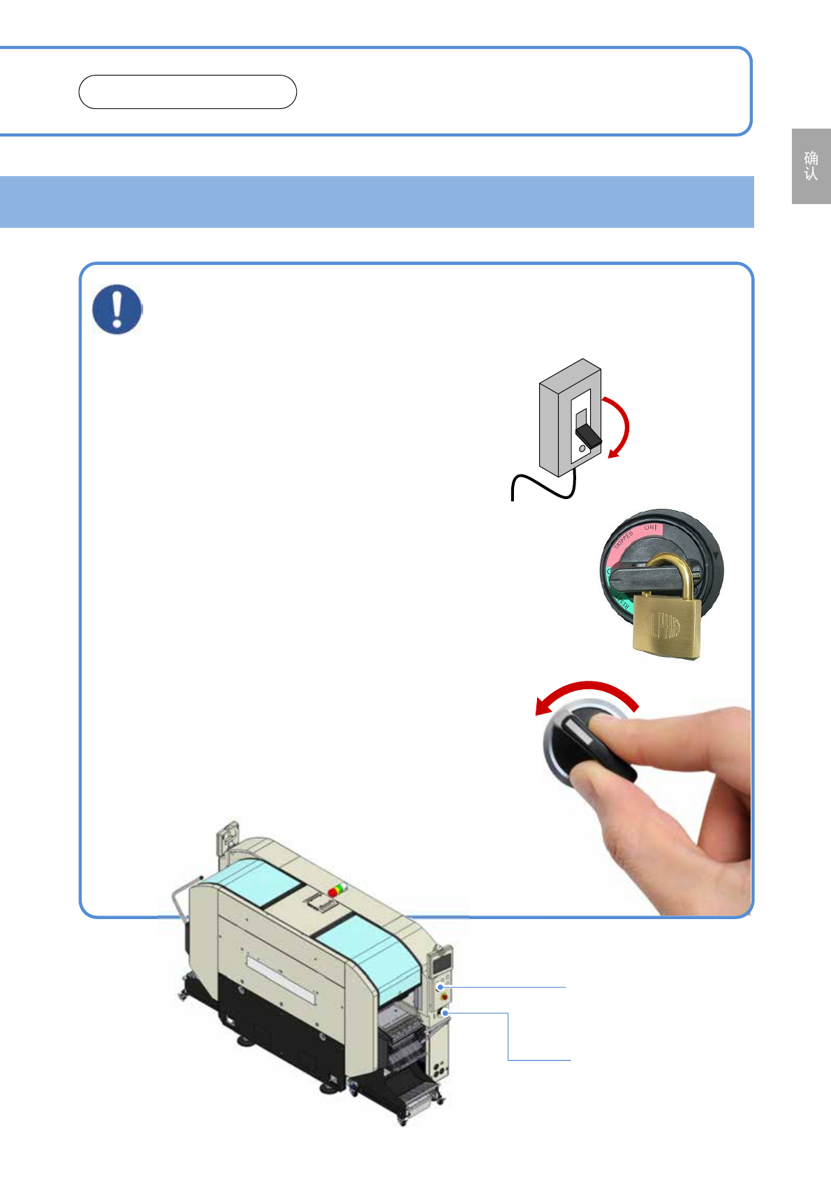 →主电源开关设定为OFF,并且上锁。