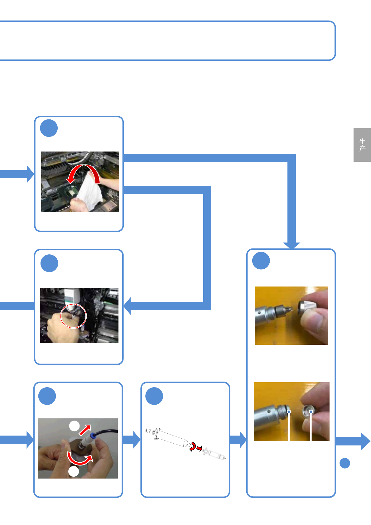 一定要做清扫工作,做排出确认,然后在此进行充粘着剂。