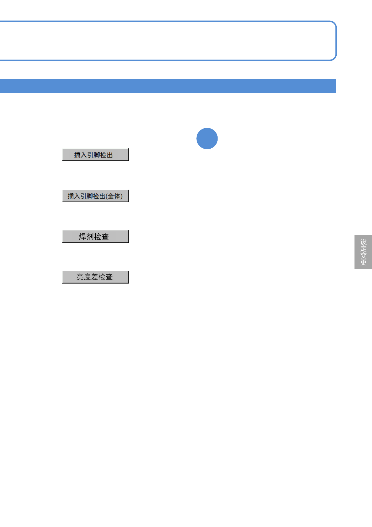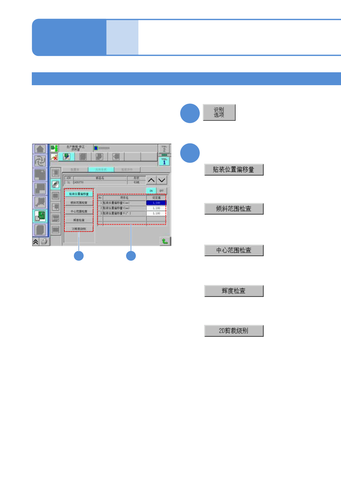 NPM-D3 EJM6DC-MB-06O-09 数据 修改 操作篇 6-1-8 6-1-8 -3 4 5 4 选择确认项目 元件形状数据的修改 2 方形芯片元件 2 3 对识别选项数据进行确认、修改。 ●选择贴装位置偏移量数据, 显示相关数据。 ●选择倾斜范围确认数据, 显示相关数据 。 ●选择中心范围确认数据, 显示相关数据 。 ●选择辉度确认数据, 显示相关数据 。 ● 2D 剪裁级别数据, 显示相关数据。