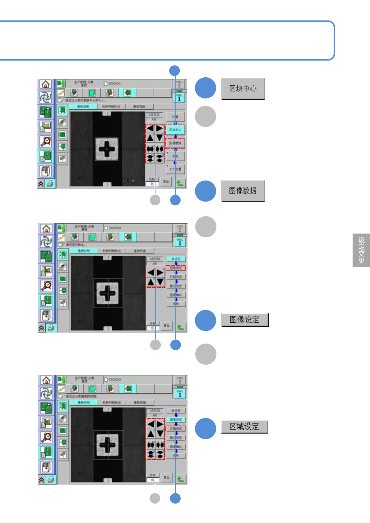 NPM-D3 EJM6DC-MB-06O-09 生产数据 校正 基板识别校正 5 操作篇 6-2-2 6-2-2 -9 11 12 E F 10 F E 10 11 12 区块匹配 2 ●无需特意设定跳过值。 ●无需特意进行图像确认。 设定进行区块匹配识别之际的搜索区 域 ( 识别范围 ) 。 设定进行区块匹配识别之际的搜索区 域 ( 识别范围 ) 。