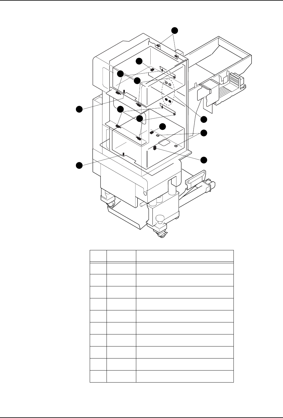 4. 传感器配置图 QD145-11 78 NXT II 机械手册 4.14.2 料盘塔 No. 地址 信号名 1 IN1F 下部料盘箱锁定确认 2 IN1E 上部料盘箱锁定确认 3 IN1C 上部料盘箱设置确认 4 IN1D 下部料盘箱锁定确认 5 IN22 上部料盘箱料盘高度确认 (左) 6 IN23 上部料盘箱料盘高度确认 (右) 7 IN24 下部料盘箱料盘高度确认 (左) 8 IN25 下部料盘箱料盘高度确认 (右) 9 IN…