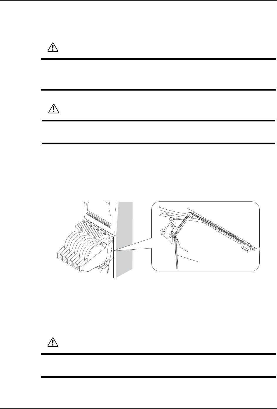 5. 基本操作 QD145-11 90 NXT II 机械手册 5. 压入到停止块为止的模组会自动地锁定。即使不发生错误也不能锁定时 ,请将模组稍微 拉后一些,重新压入。 6. 模组和废料带处理箱对应料盘单元 -LT 的空 气吹气排出类型的时候,请将从基座 内废料 带处理槽露出的空气管的 插头插入到模组前盖板的插座中。 注意 拉出 / 插入模组时,请不要强行拉出或压入而撞到停止 块上。请慢慢地移动。有可能 导致机器的安装位置偏移。 ᑻ…
