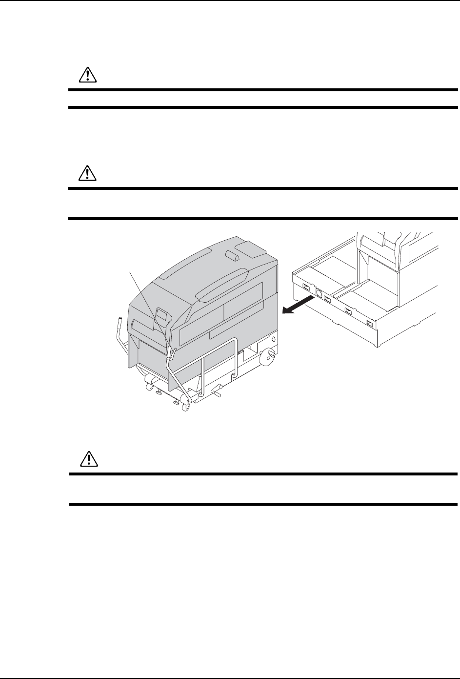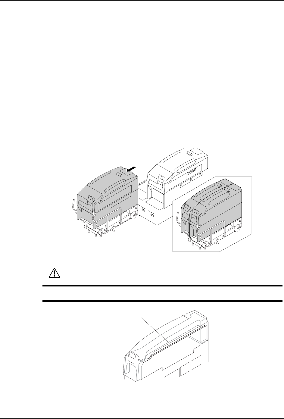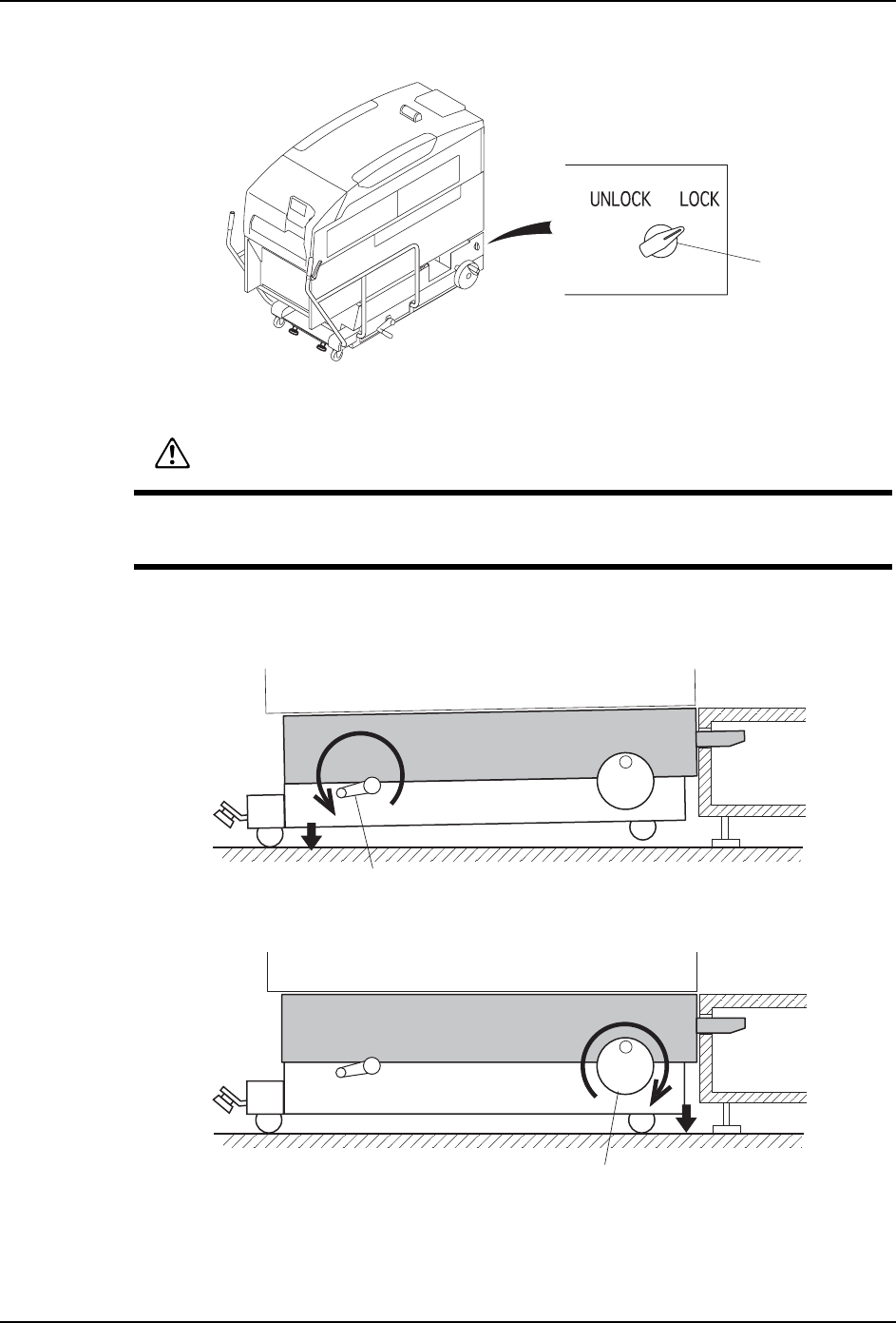 QD145-11 5. 基本操作 NXT II 机械手册 97 b. 模组移动结束后,将 MCU 的旋钮对准 「LOCK」的位 置。固定模组在 MCU 上。 c. 从基座侧拉出电缆托架,小心地从模组中 取出。 9. 降下 MCU 的后轮 ( 仅仅限于用步骤 (3) 调整水平的时候 ) a. 旋转摇手柄,降低后轮 ( 提升升降脚 ) b. 同样,前轮也下降。 NXTOPE006Sb ᮟ䪂 注意 在机器前侧进行操作的时候 , 请注意不要将衣…