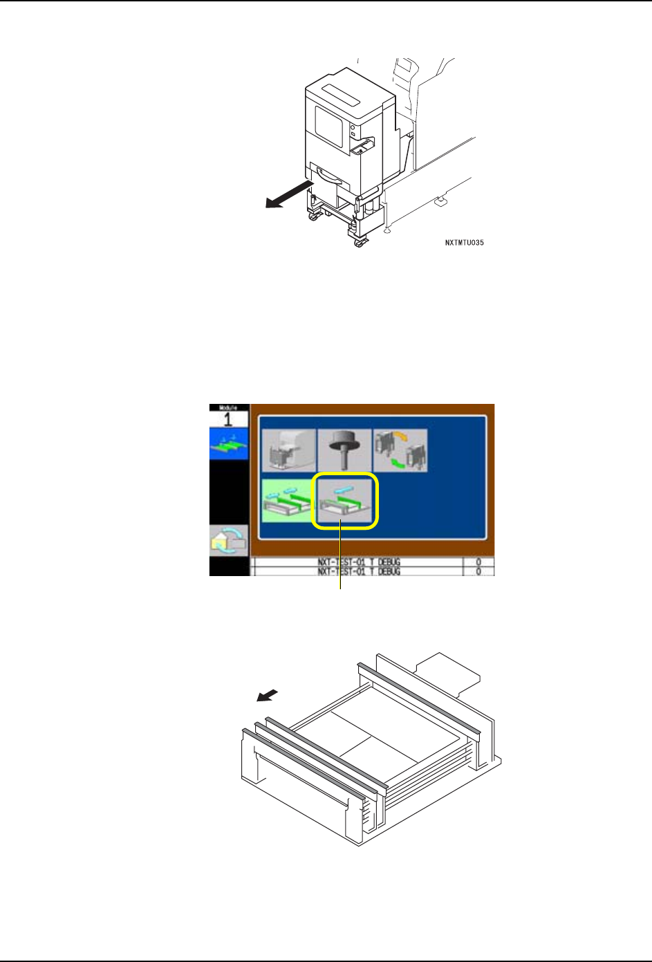 道位置的确认。在操作面板上显示出拉出模组的向导。
