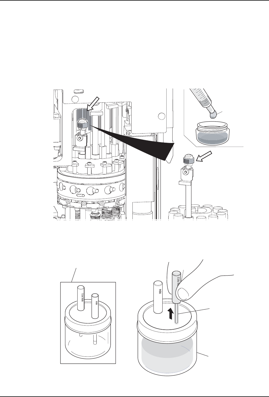 a. 在专用的密封瓶中放入指定的润滑油 , 插入涂敷用的注油棒。