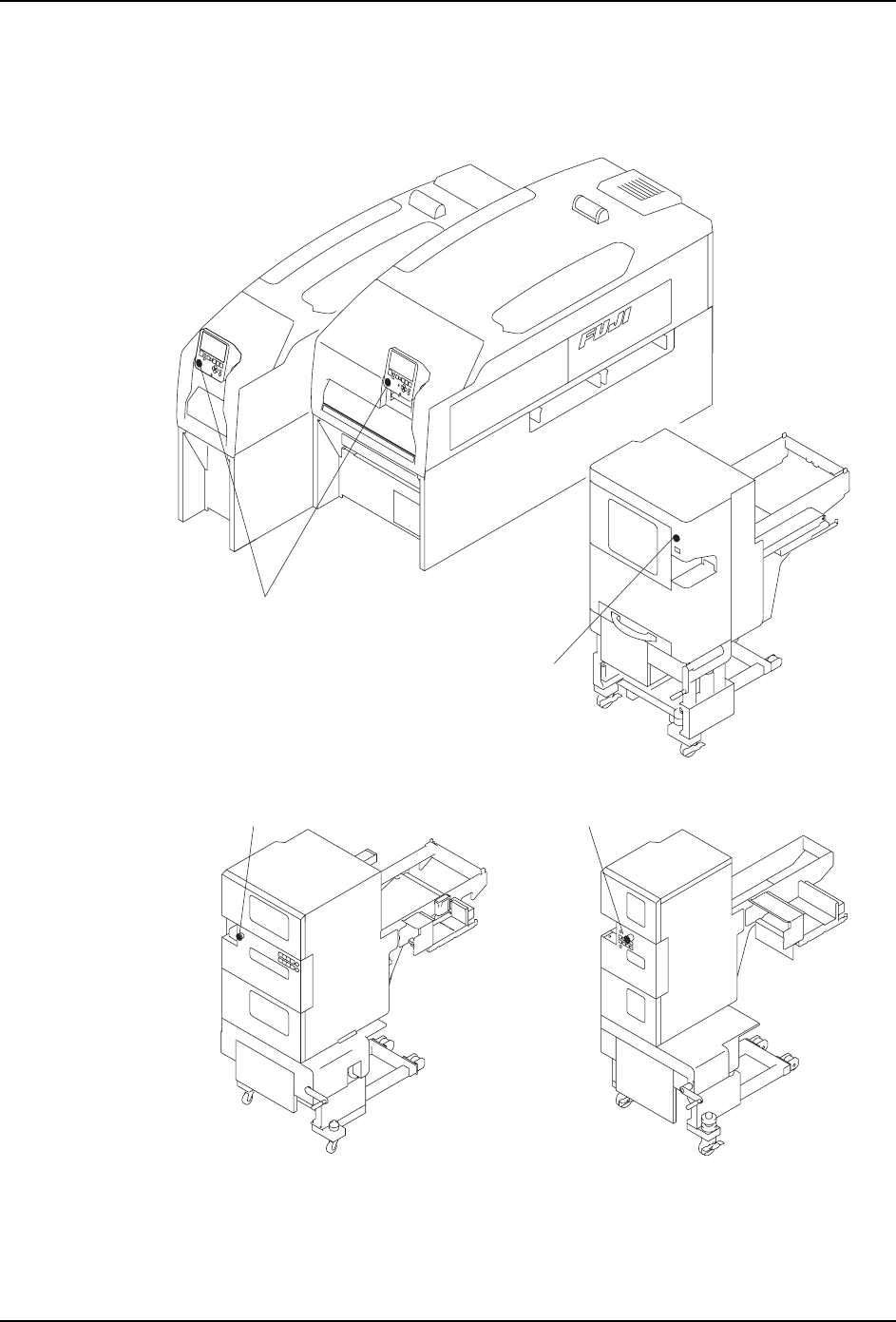 发生紧急情况时,请按下机器上红色的紧急停止按钮停止机器运转。紧急停止按钮的位置请