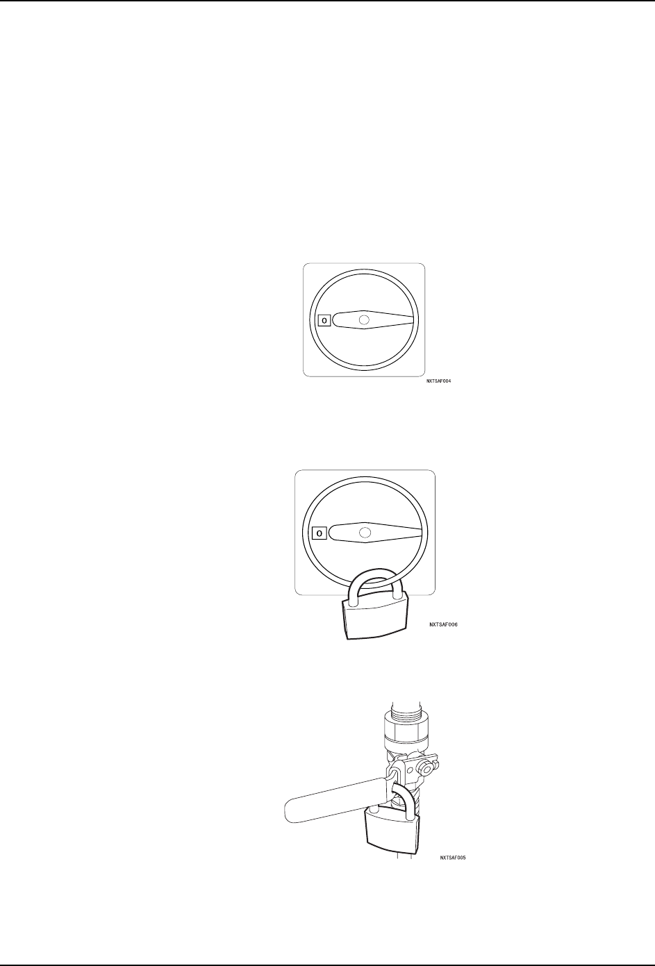 QD145-11 1. 安全指南 NXT II 机械手册 17 1.6 关于闭锁 操作或维修保养机器时, 进行设置, 使得非负责机器的人员 不能打开机器的电源和气源, 这 叫做 [ 闭锁 ]。 多个人员同时进行操作时, 为了防止机器操作错误所引起的事故, 请每个操作人员都牢记下 面的闭锁步骤。 1.6.1 如何实施闭锁 准备市场上出售的荷包锁 (2 个)和标签,所有操作 人员准备好记录自己名字的标签。 1. 切断机器的电源。 2. 将基…