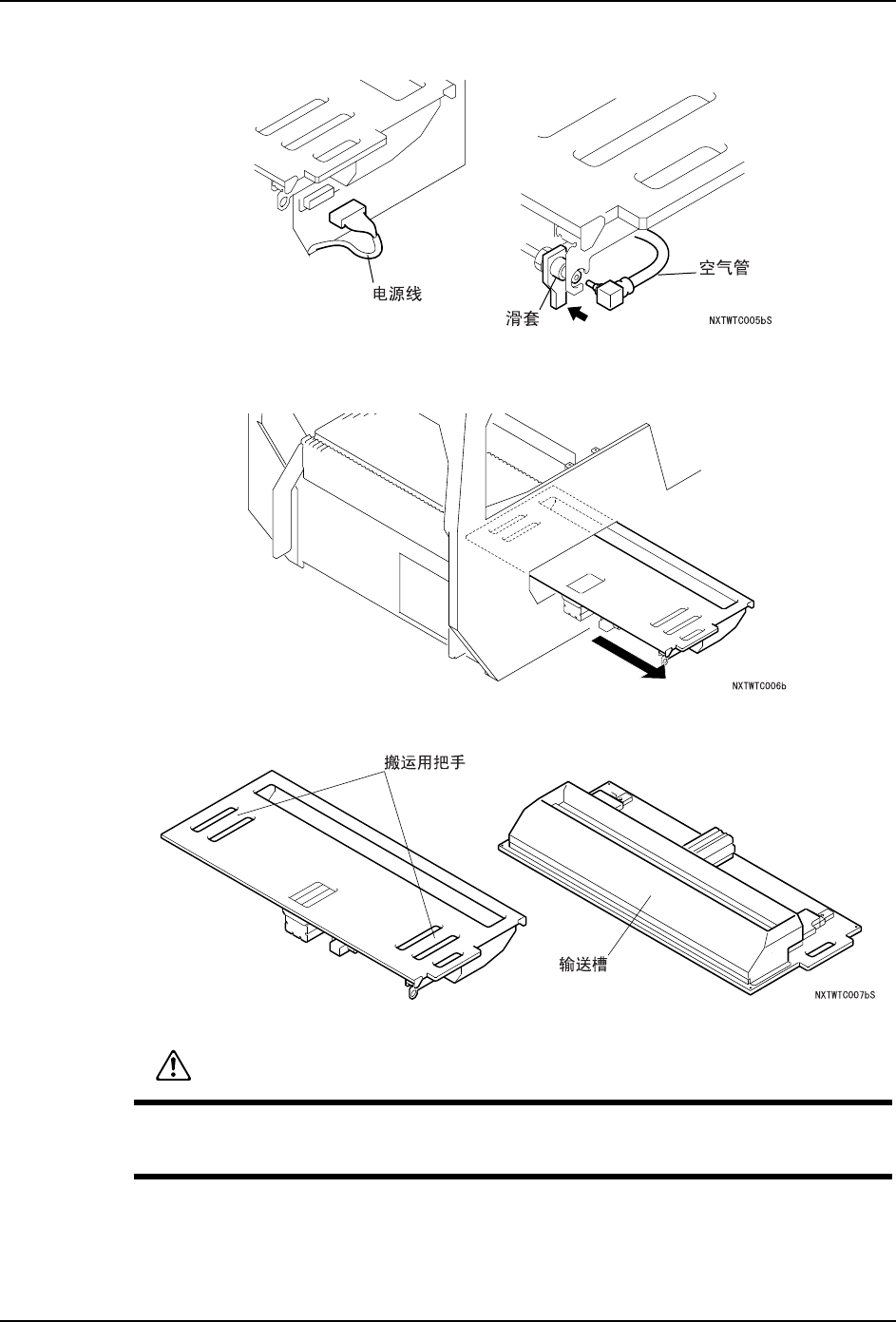·输送槽中有阶梯,这个阶梯在拆下单元时折叠部份处于自由状态。非常危险,在搬运