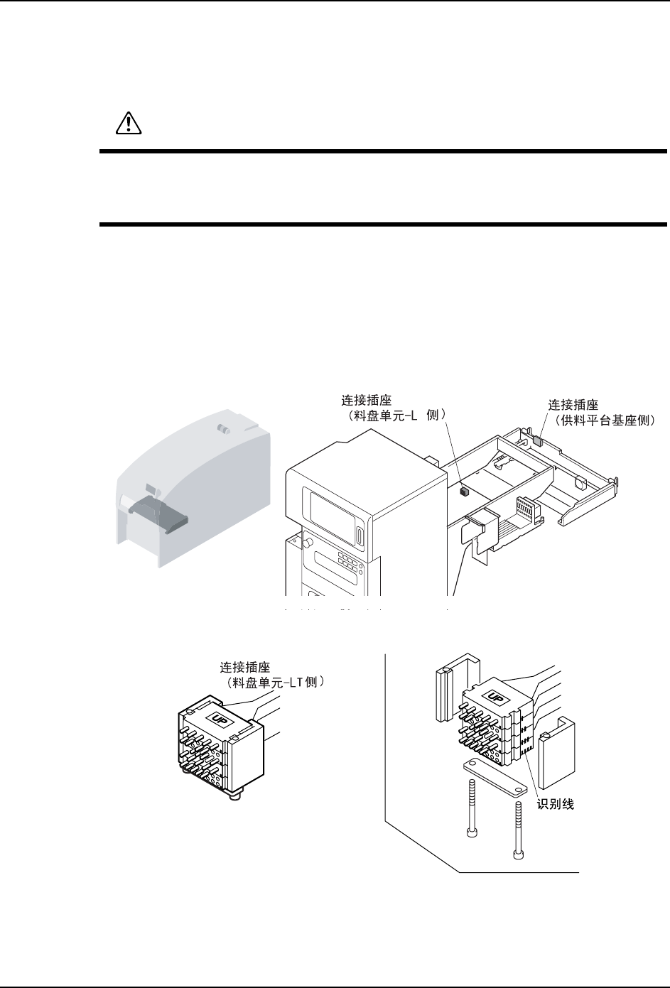 2. 在料盘单元 -LT 和料站托架基座上的图示位置上有用于布线的组合插座。