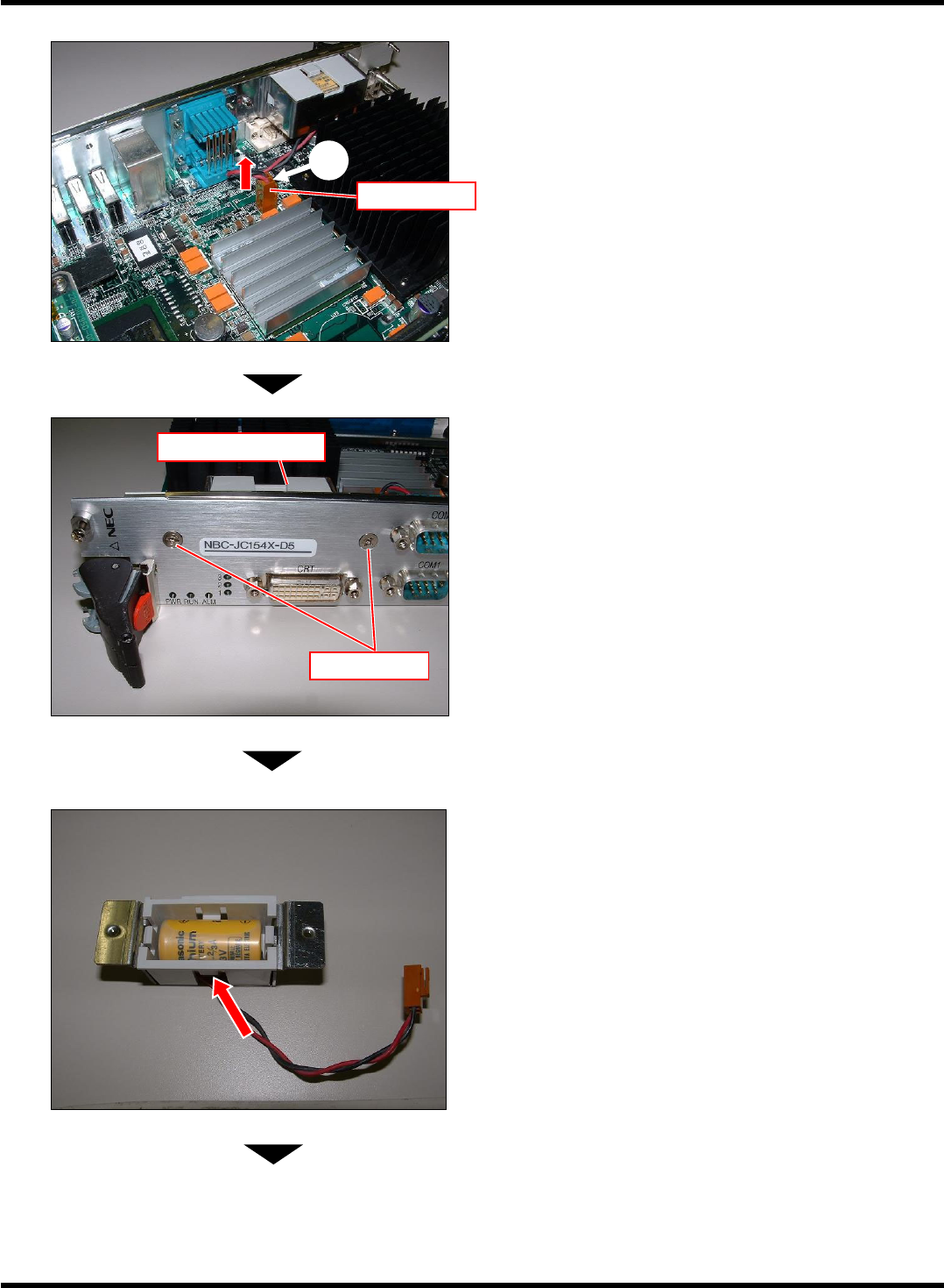 SP18P-L 维修手册 1.8 消耗零件更 换 Page 1-66 1.8.6 CPU 板蓄电池的更换 蓄电池电压降低后,在监视器画面上 将会显示电压降低的警告信 息。请按照下述顺序更换蓄电池 。 [ 注意事项 ] 1. 在 2 小时以内完成步骤 1 ~ 7 为止的作业。 2. 请注意勿使散热片先端部损伤电缆。 3. 错误使用蓄电池是造成发热、起火、 破裂等事故的原因。 请绝对避免发生如下情况。 、 端子的短路 ; 弄错 …