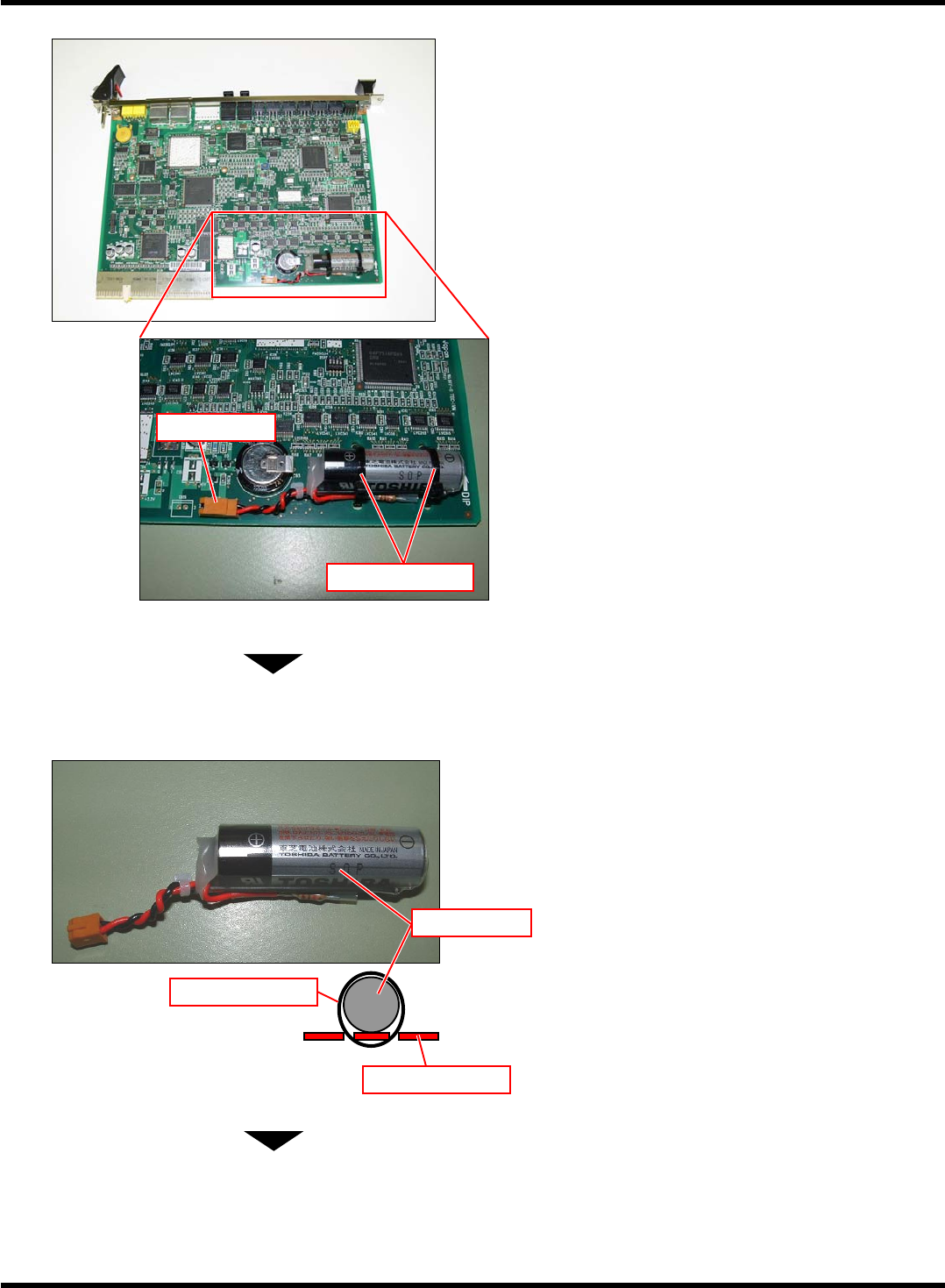 SP18P-L 维修手册 1.8 消耗零件更换 Page 1 -71 3. 拆卸蓄电池。 • 拆卸蓄电池的连接器。 • 切断绑扎带 (2 处 ) ,拆卸蓄电池。 4. 更换蓄电池。 ∗ 新的蓄电池,请使用 N51002165 2AA 。 • 使用绑扎带 (2 处 ) ,在板上固定蓄电 池。 • 连接蓄电池的连接器。 下一页 EJP1A- C-MMA01-A0 3-00 连接器 绑扎带 蓄电池 绑扎带 NCIO 板
