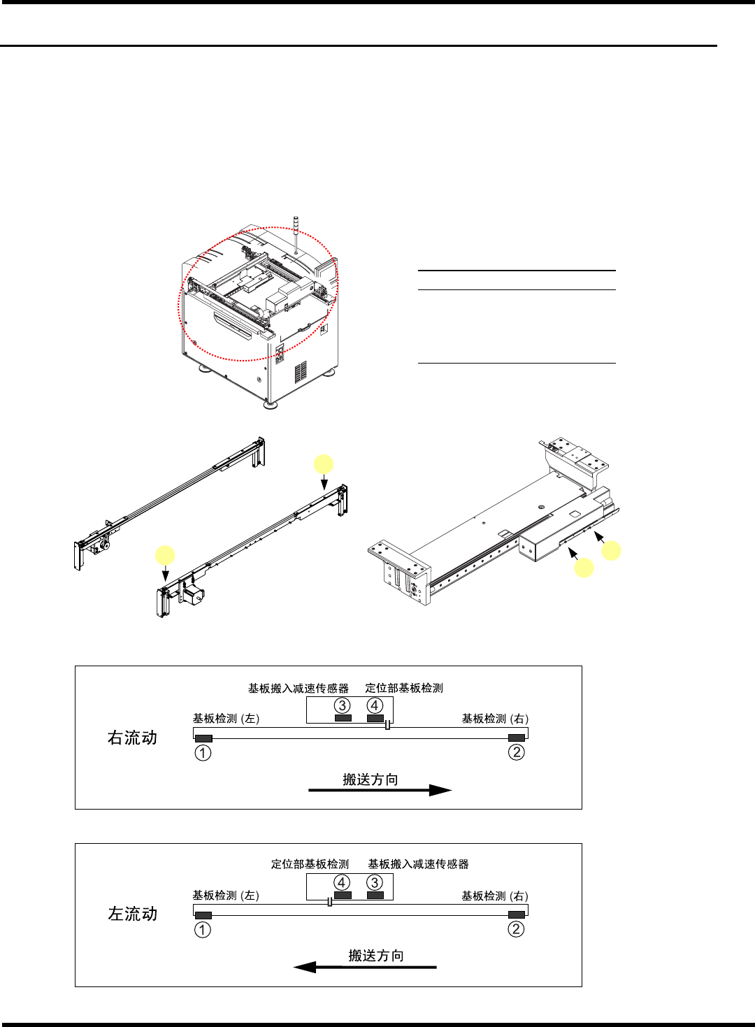 SP18P-L 维修手册 3.1 各种传感器的动作确认 Page 3-2 3. 3.1 各种传感器的动作确认 3.1.1 基板检测传感器 基板检测传感器是检测传送带上是否 存在基板的反射型传感器。 识别装置有 2 处, 搬送部有 2 处, 共有 4 处。 传感器设置位置 名称 基板检测 ( 左 ) 基板检测 ( 右 ) 基板搬入减速传感器 定位部基板检测 EJP1A-C-MMA03-A01-01 EJP1A-481C…