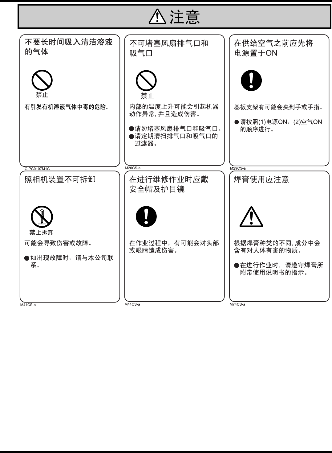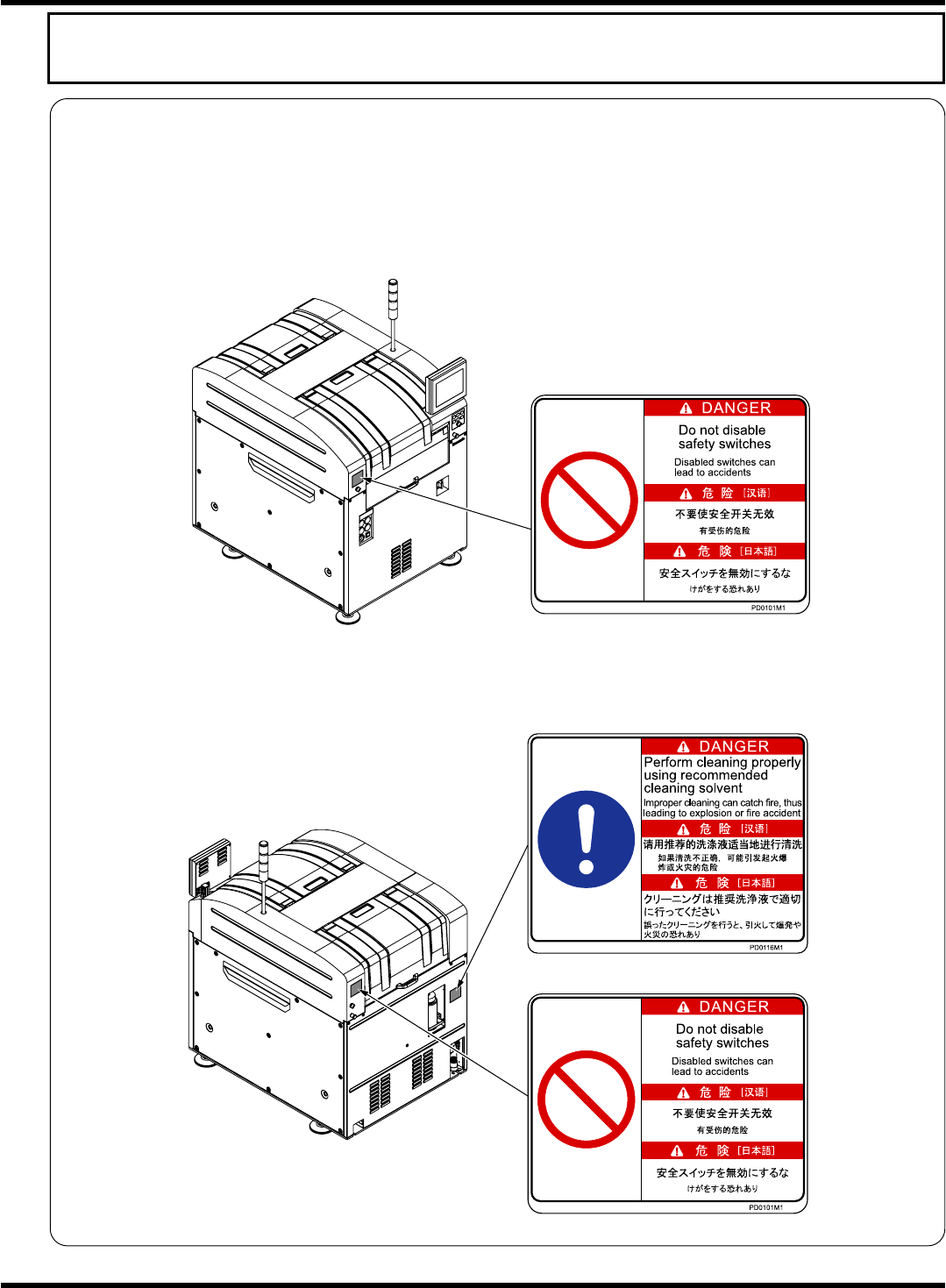如下图所示,本机器贴有警告显示标牌。请遵守标牌的指示。